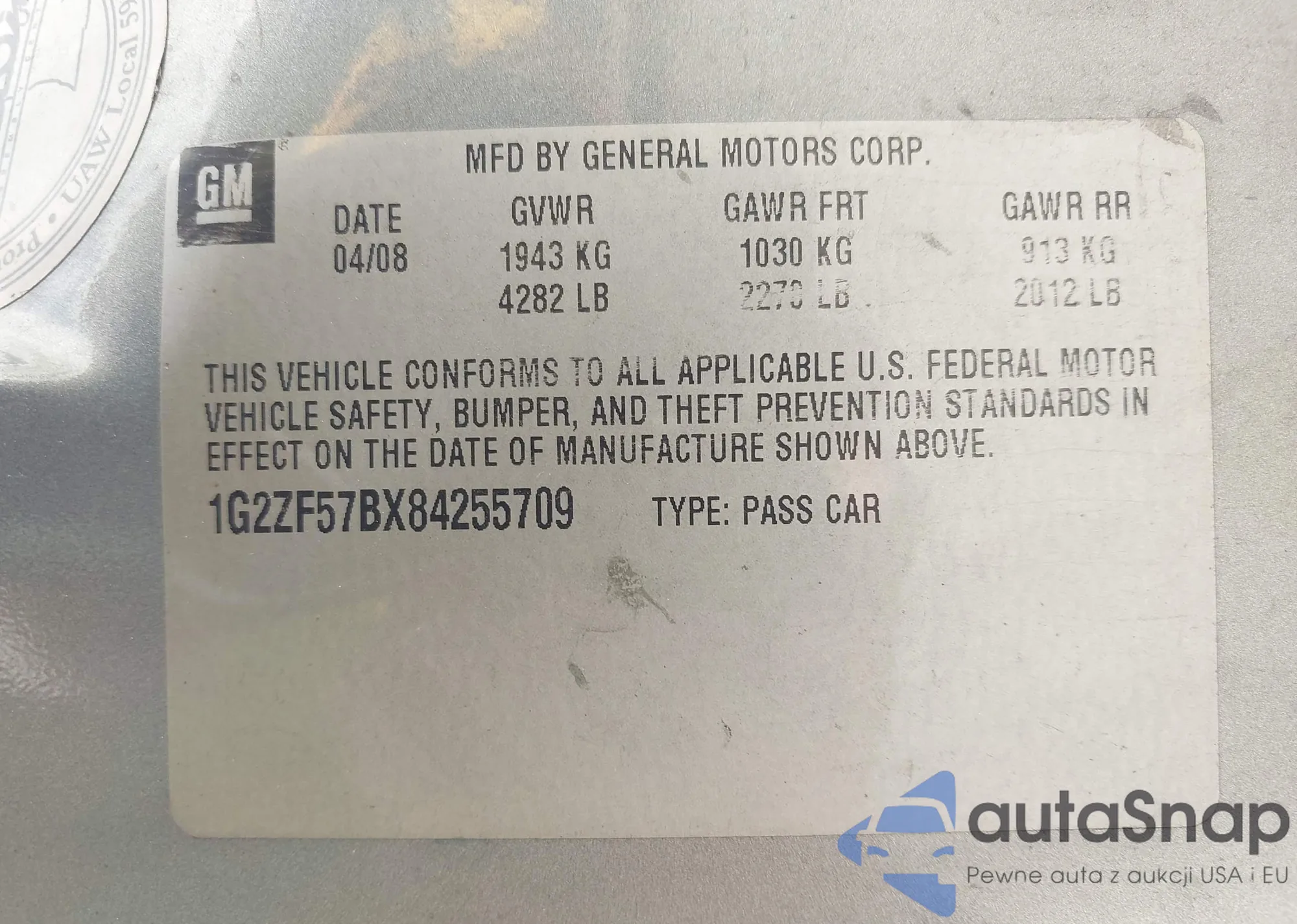 LOT: 42480038 VIN: JF1GPAM60F8270022