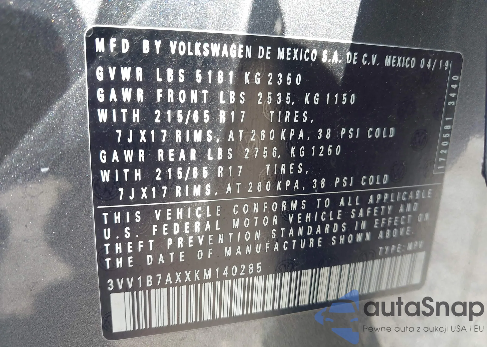 LOT: 42514740 VIN: WA1ECCFS2HR008755