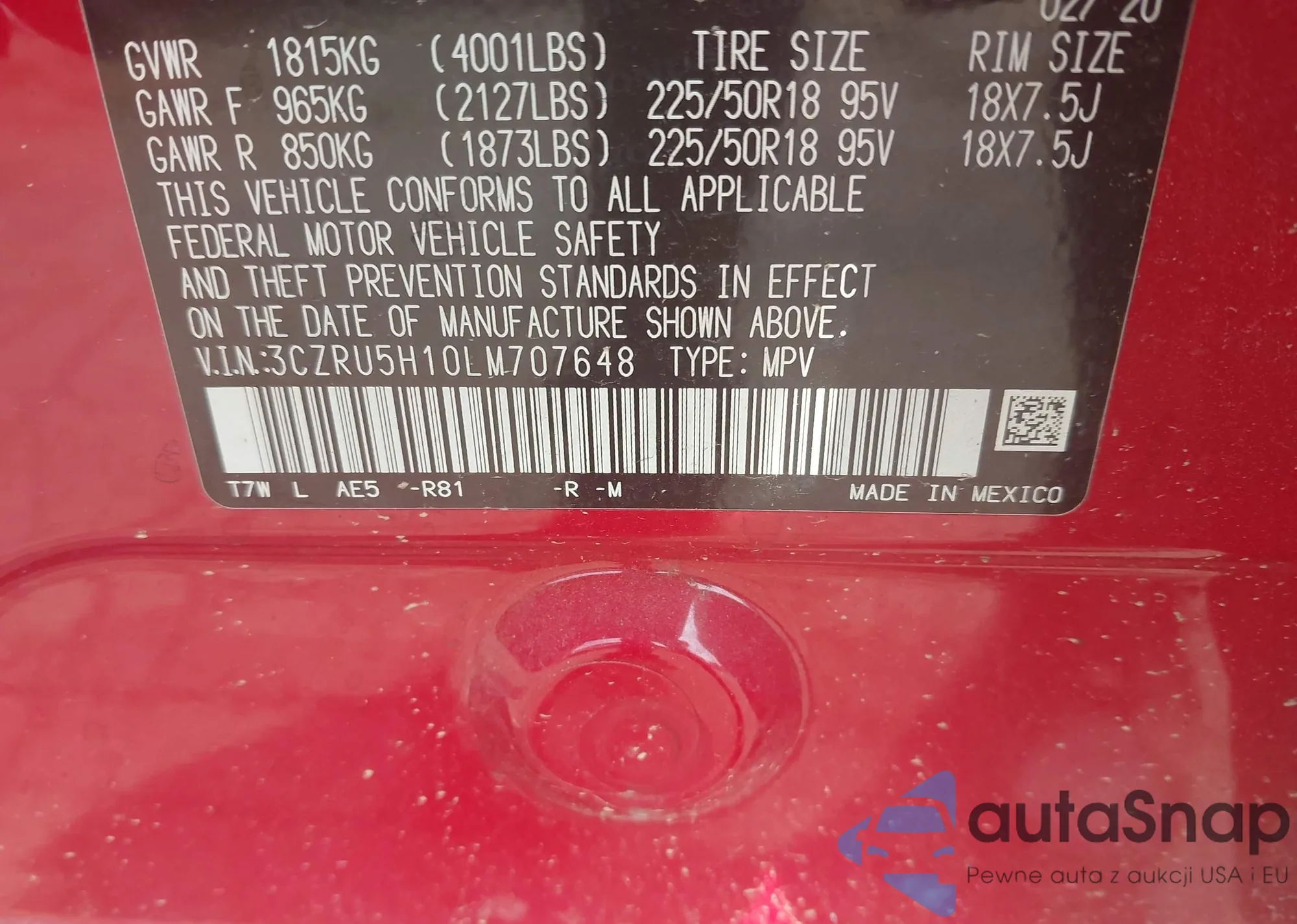 • VIN 3CZRU5H10LM707648