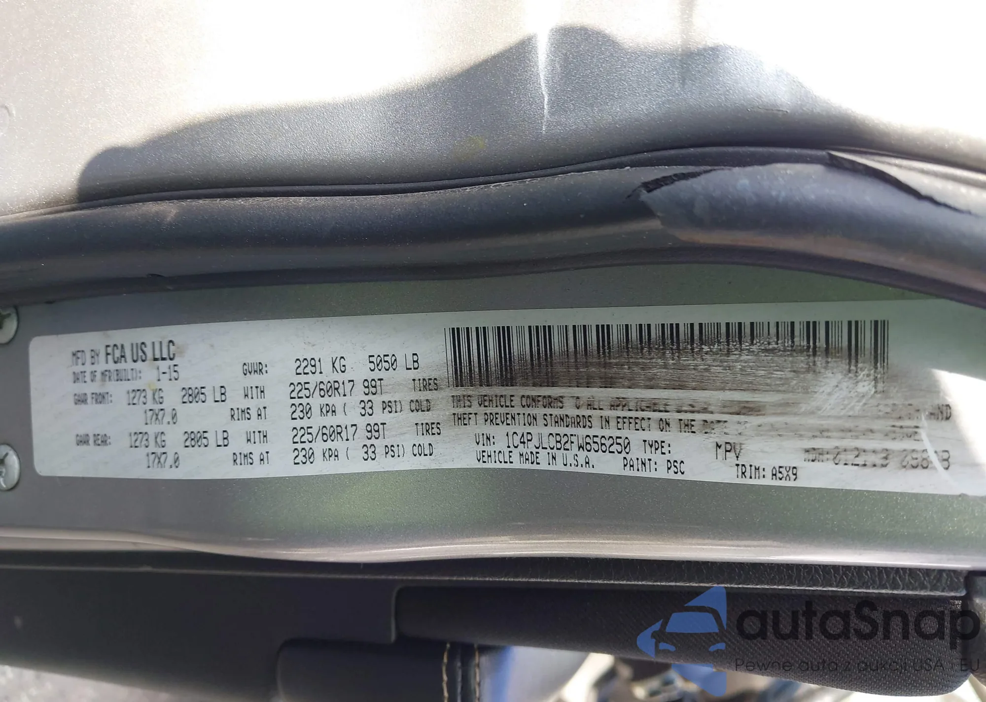 • VIN 1C4PJLCB2FW656250