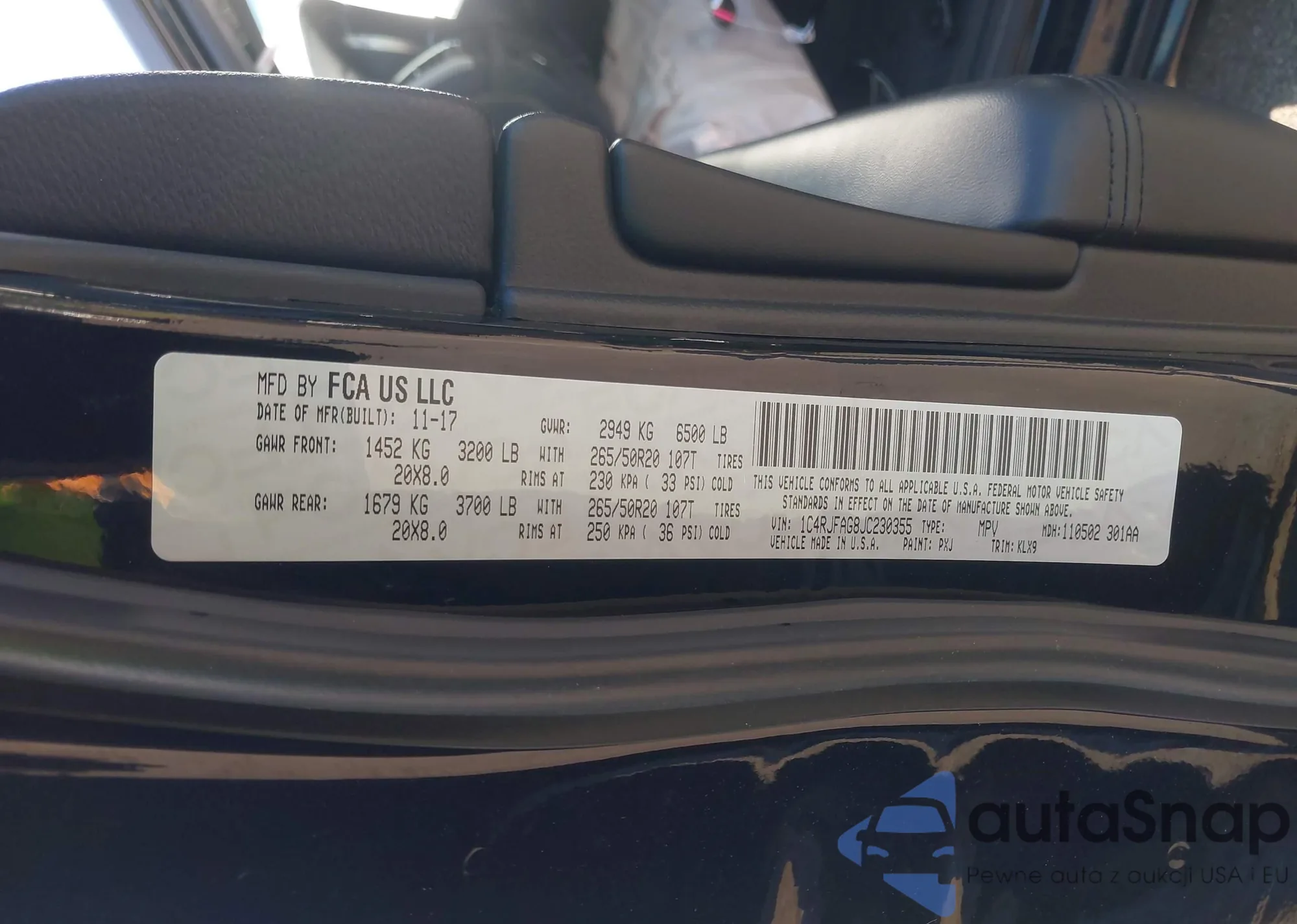 • VIN 1C4RJFAG8JC230355