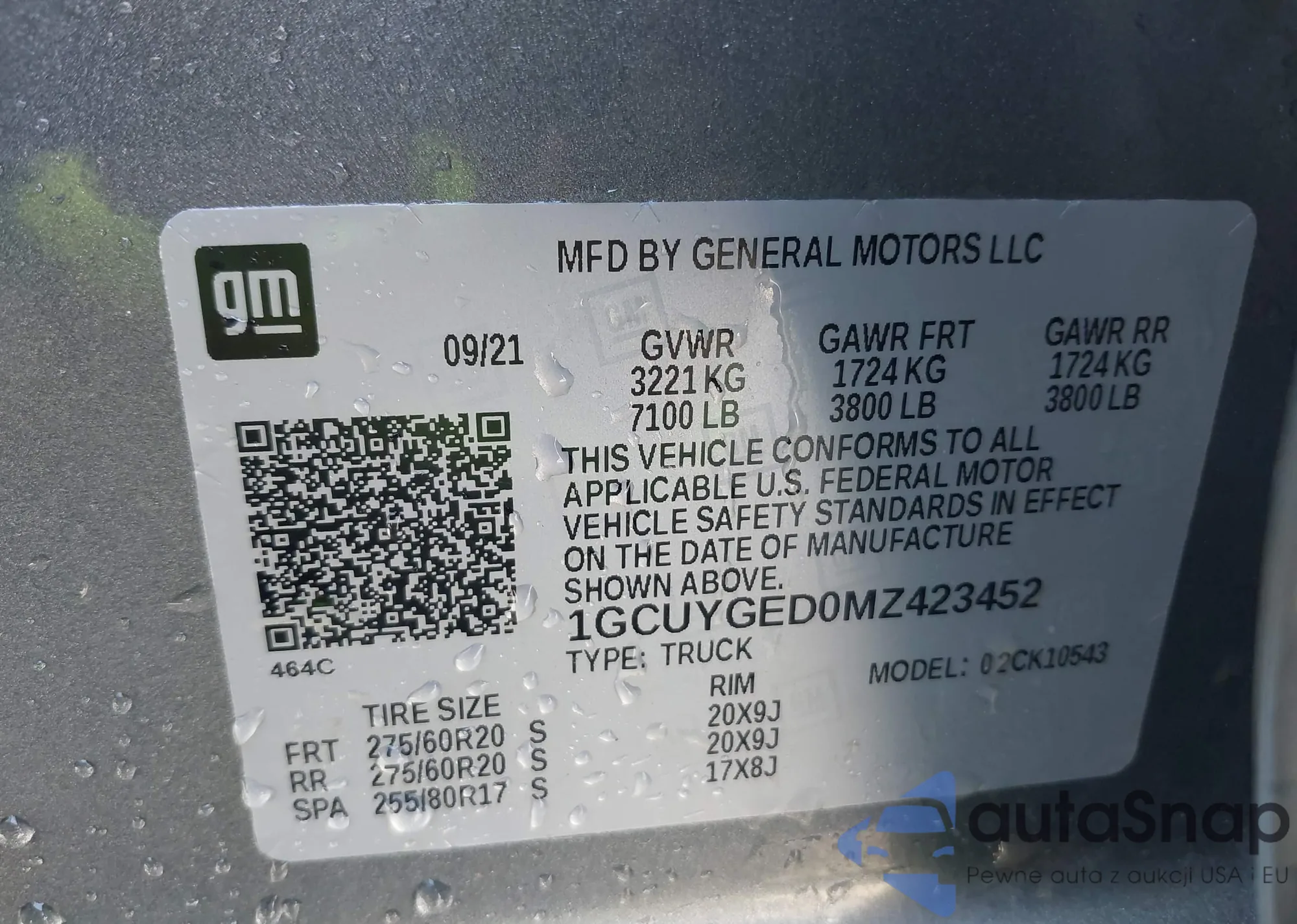 LOT: 42472373 VIN: 1GCUYGED0MZ423452