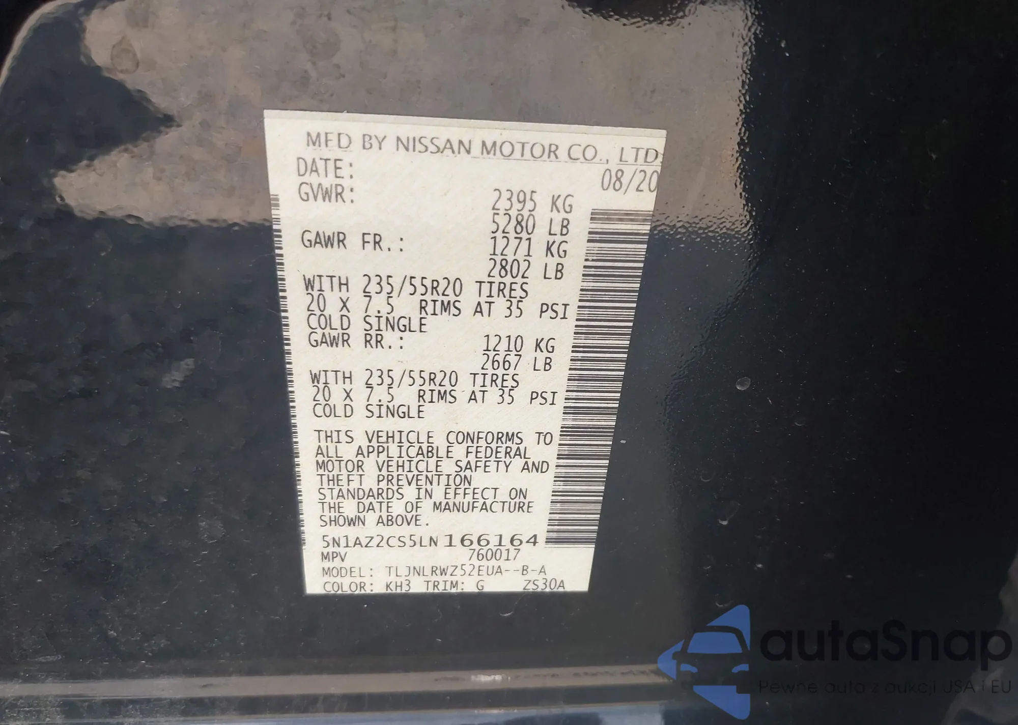 • VIN 5N1AZ2CS5LN166164