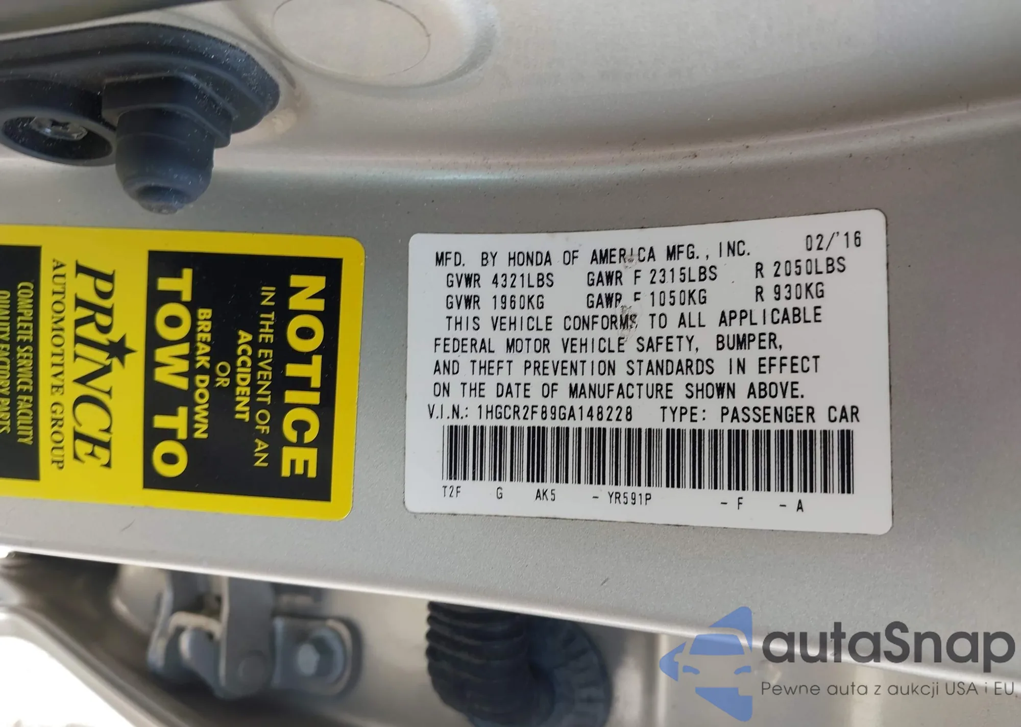 • VIN 5J6RE48359L011614
