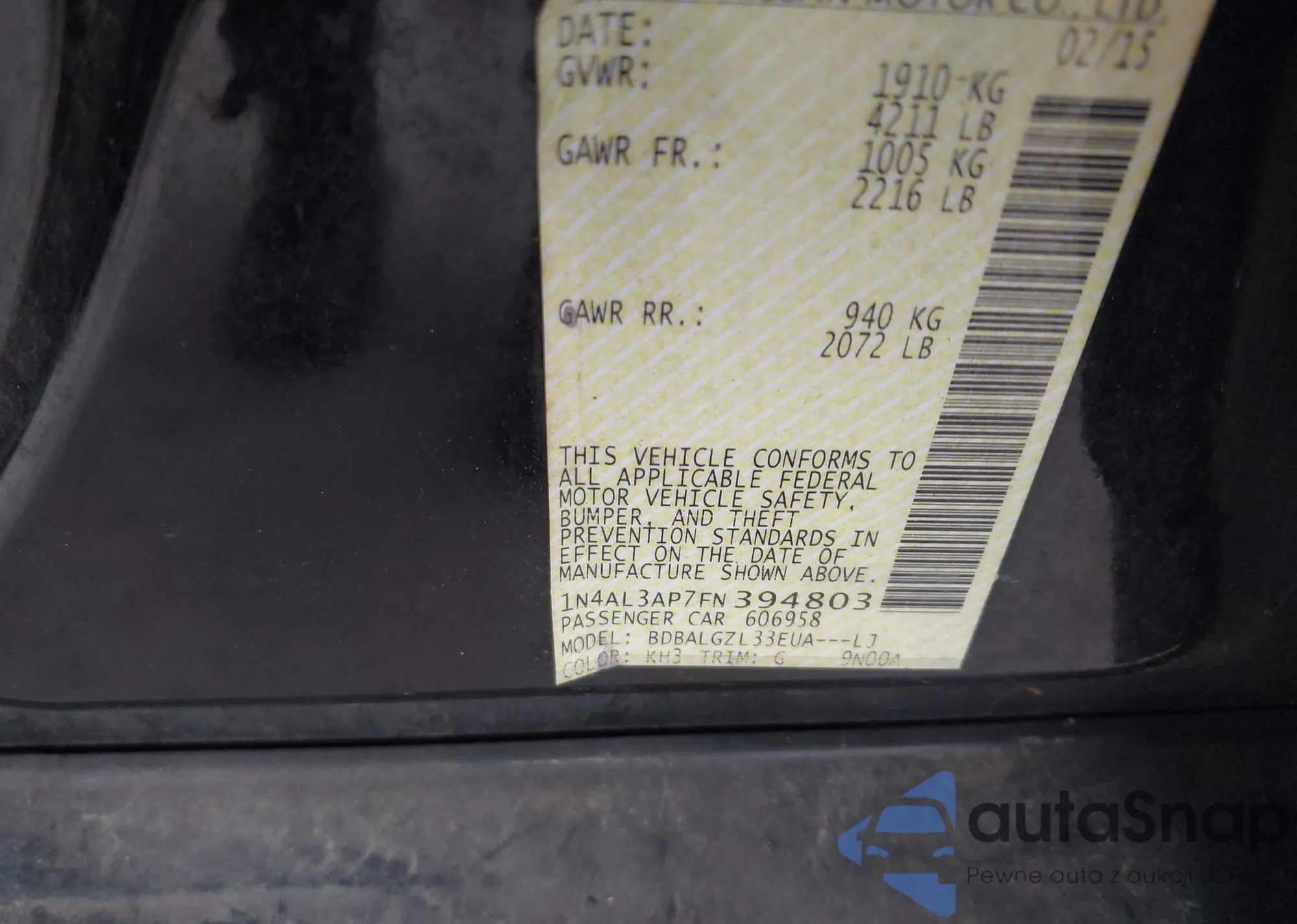 LOT: 42643792 VIN: 1N4AL3AP7FN394803