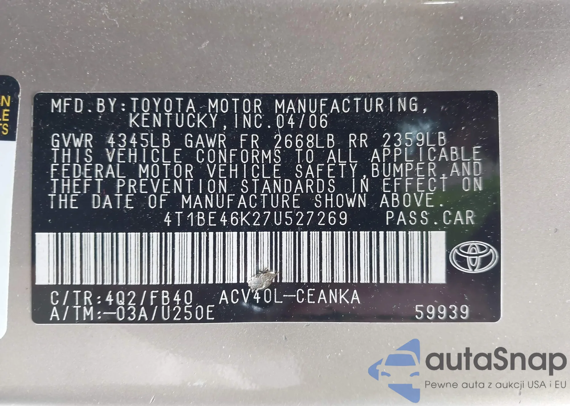 • VIN 1N4AL3AP0GN346819