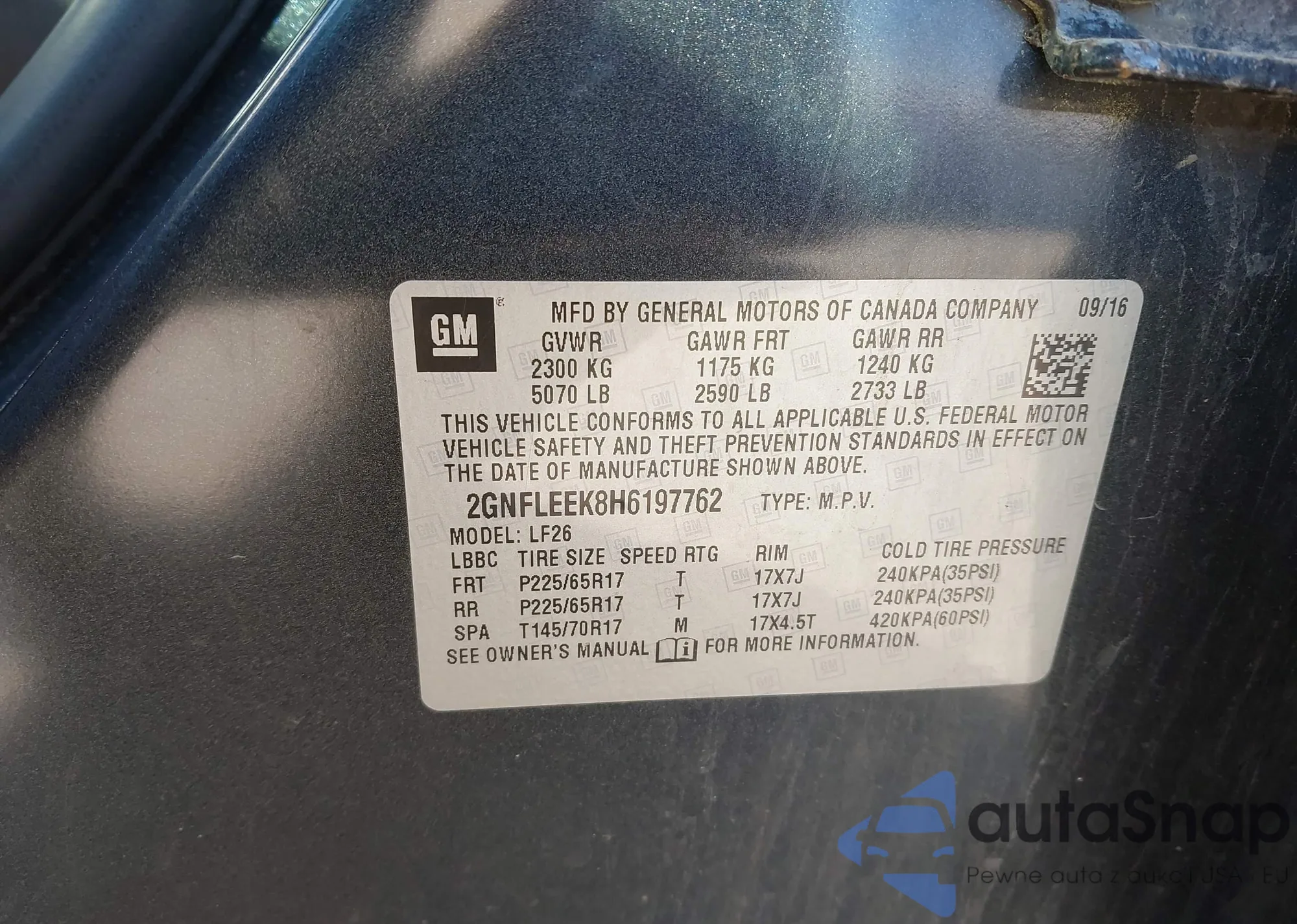 LOT: 42786134 VIN: 1GKDT13S942289566