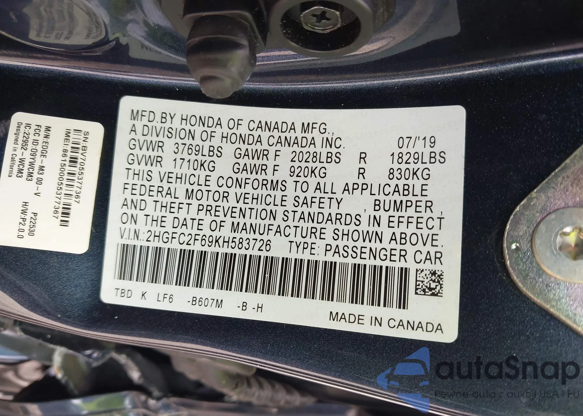 LOT: 42794219 VIN: JHMFA36239S014931