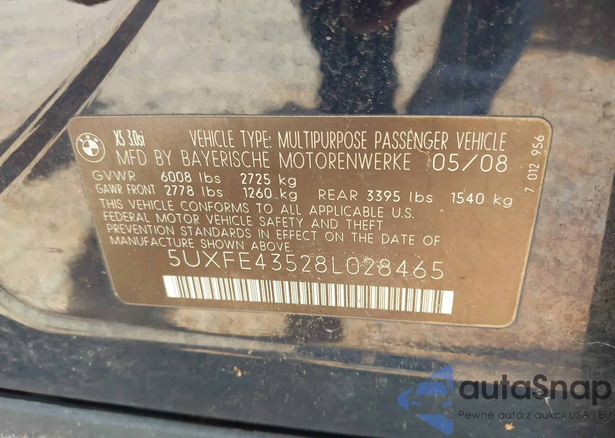 • VIN 5UXFE43528L028465