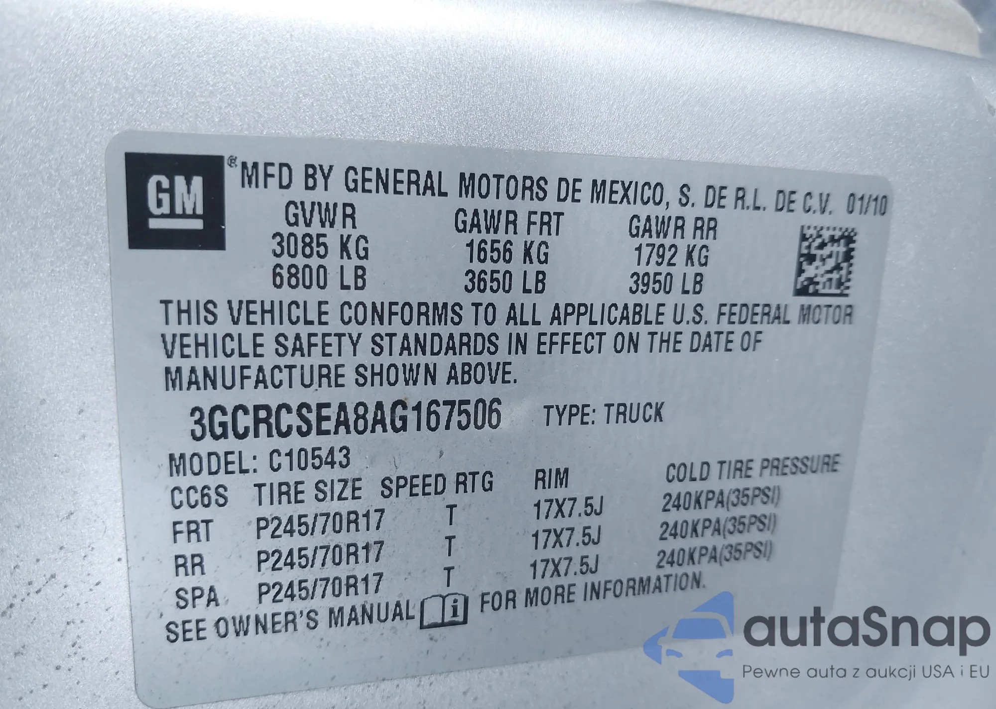 • VIN 3GCRCSEA8AG167506