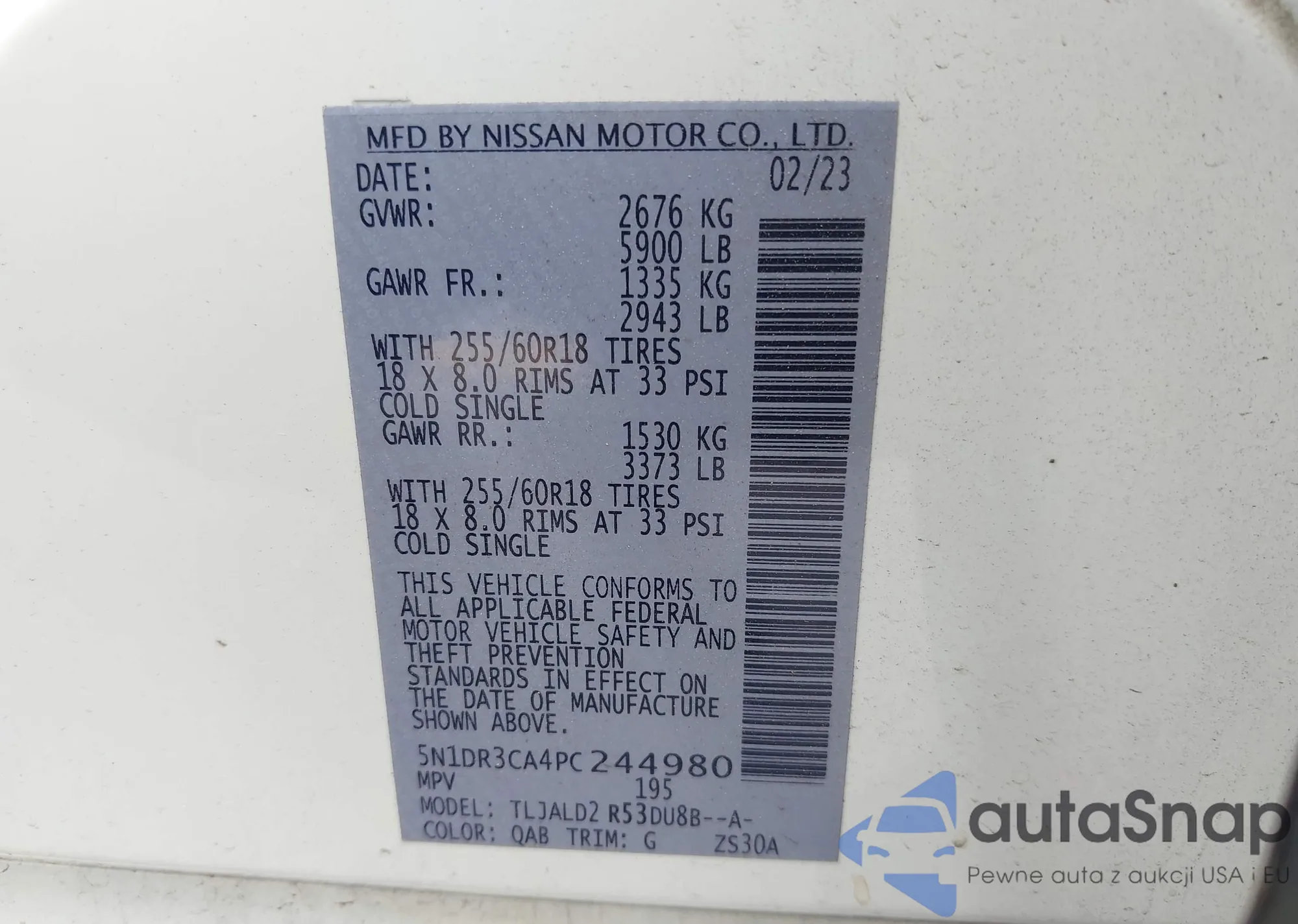 LOT: 42868393 VIN: 5N1DR3CA4PRC44980