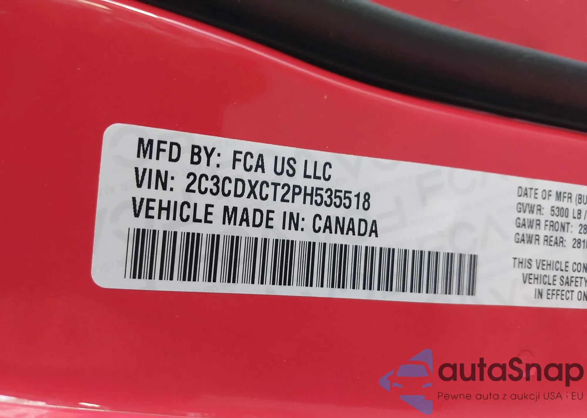 • VIN 2C3CDXCT2PH535518