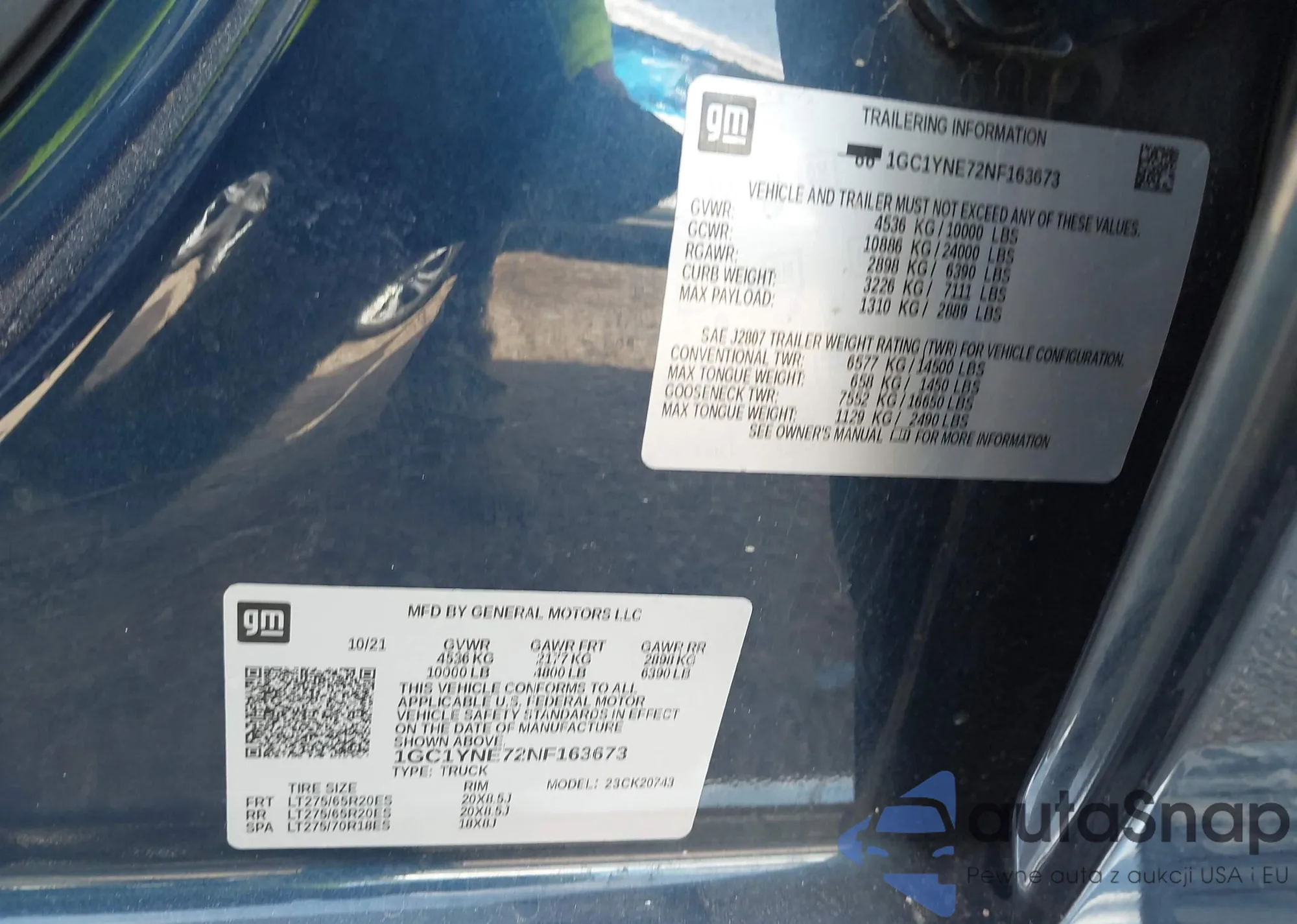 • VIN 1GC1YNE72NF163673