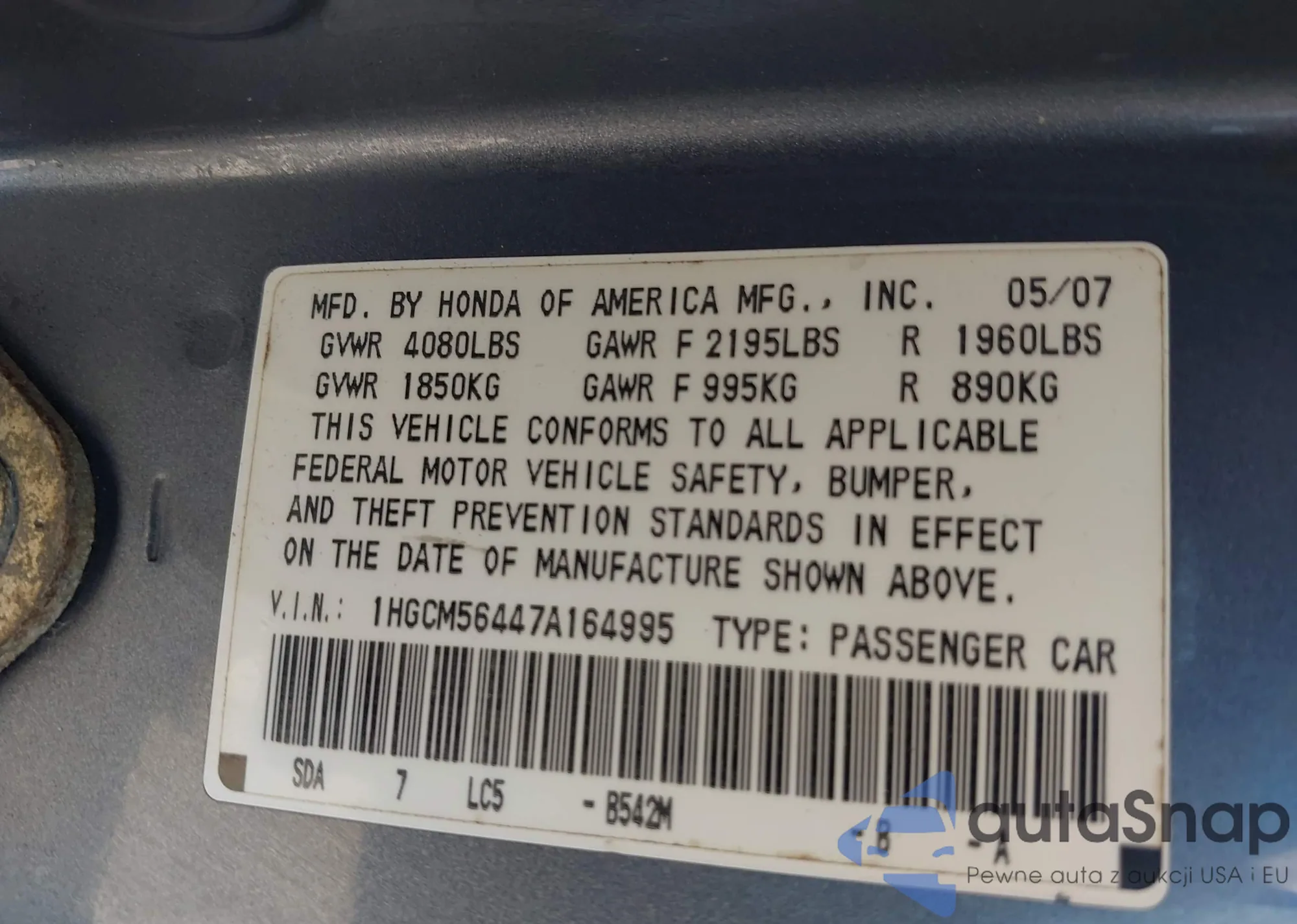 LOT: 42879228 VIN: 1HGCM56447A164995