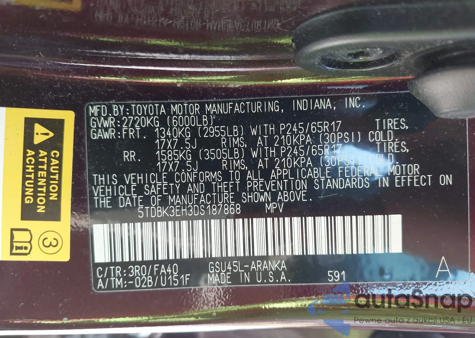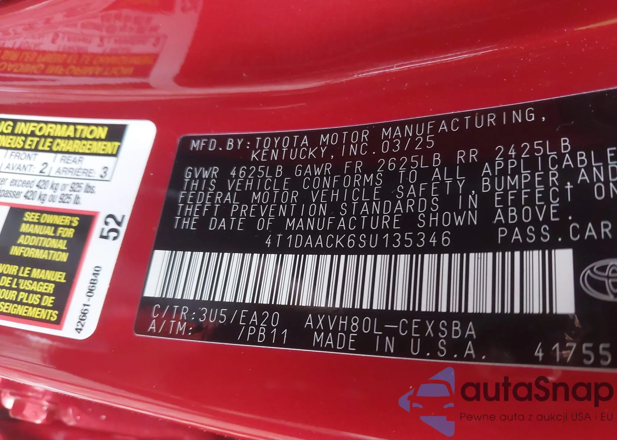 • VIN 4T1DAACK6SU135346