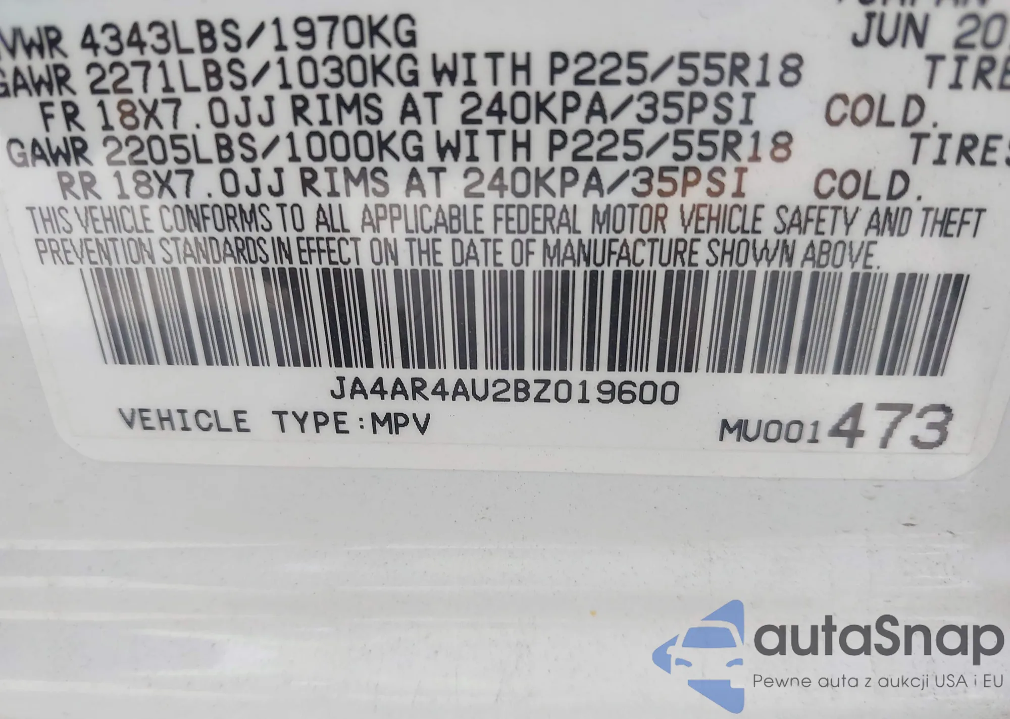 LOT: 42865734 VIN: SHSRD78474U255983