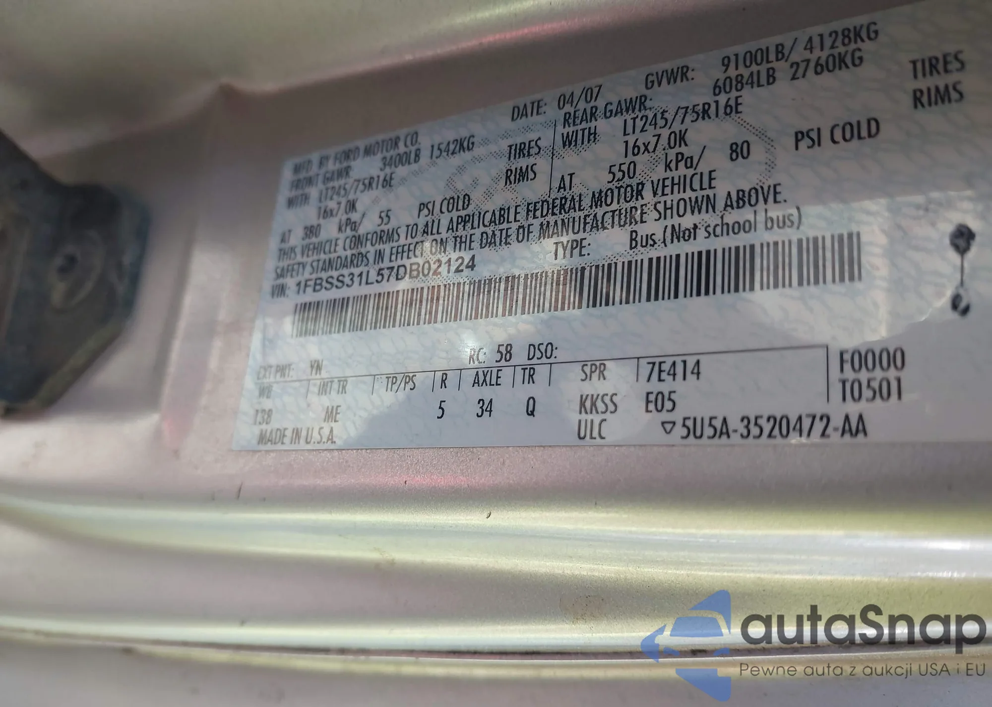 LOT: 41301642 VIN: 1FBSS31L57DB02124