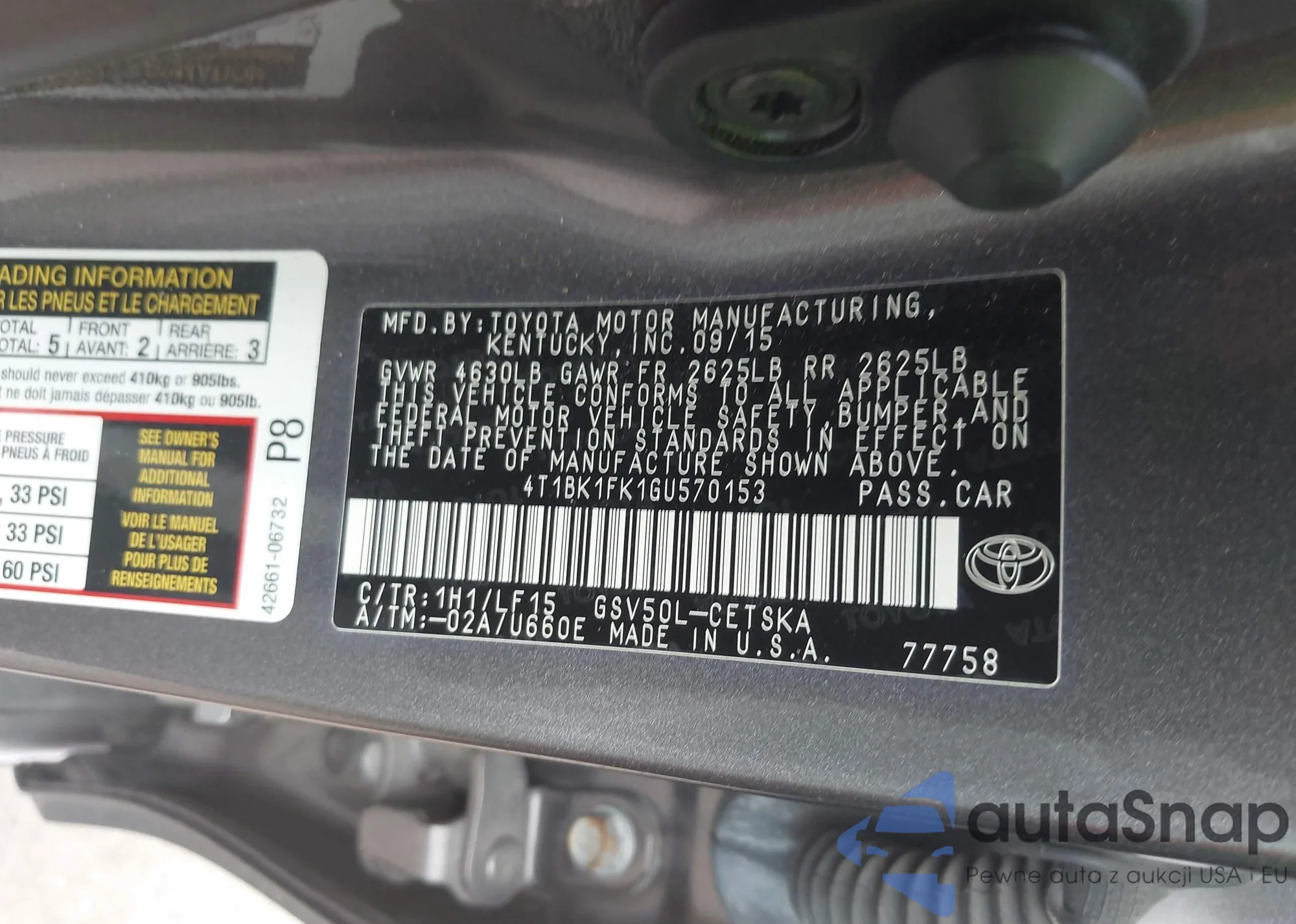 LOT: 42730499 VIN: JTEEP21A850076623