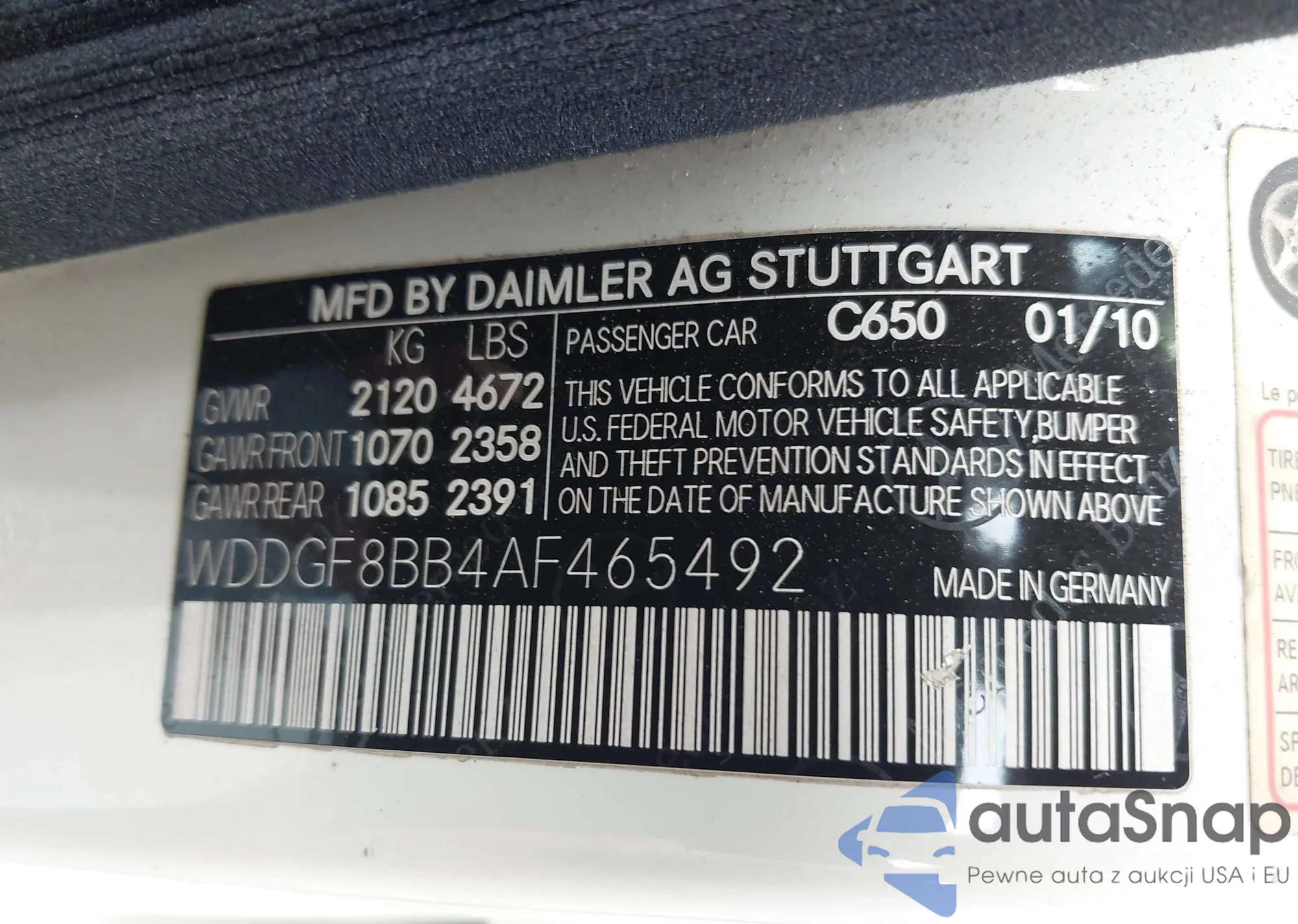 LOT: 42691007 VIN: WDDGF8BB4AF465492