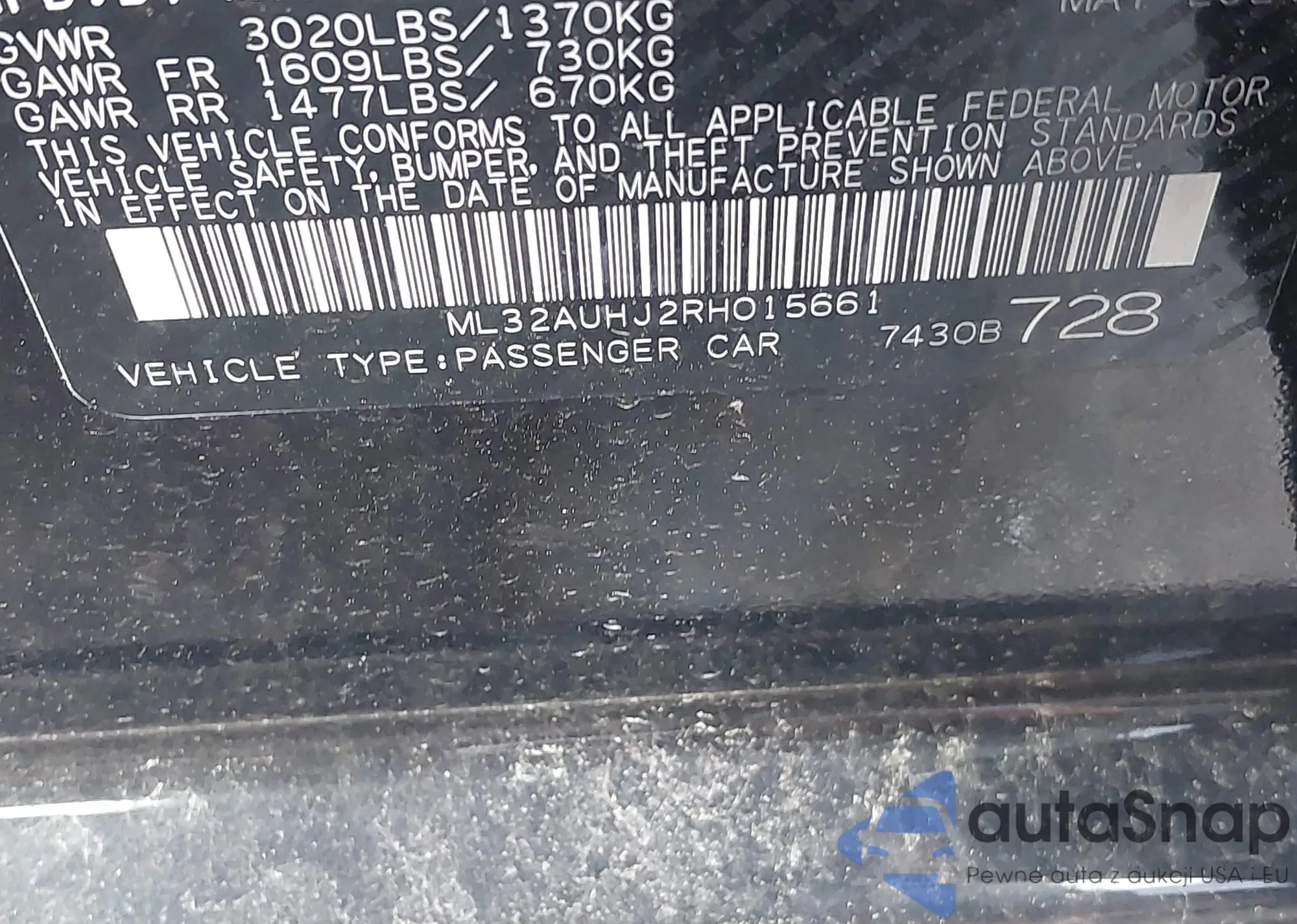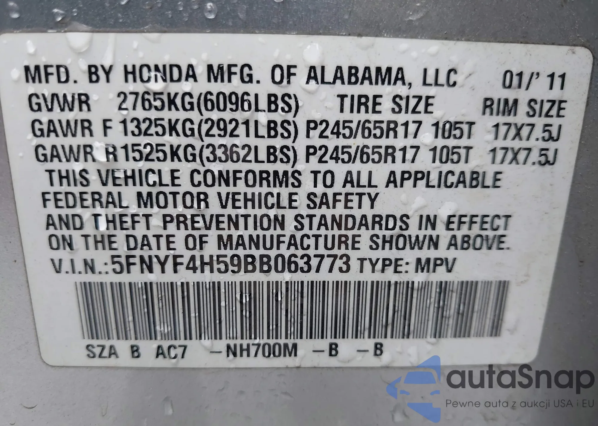 • VIN 5FNYF4H59BB063773