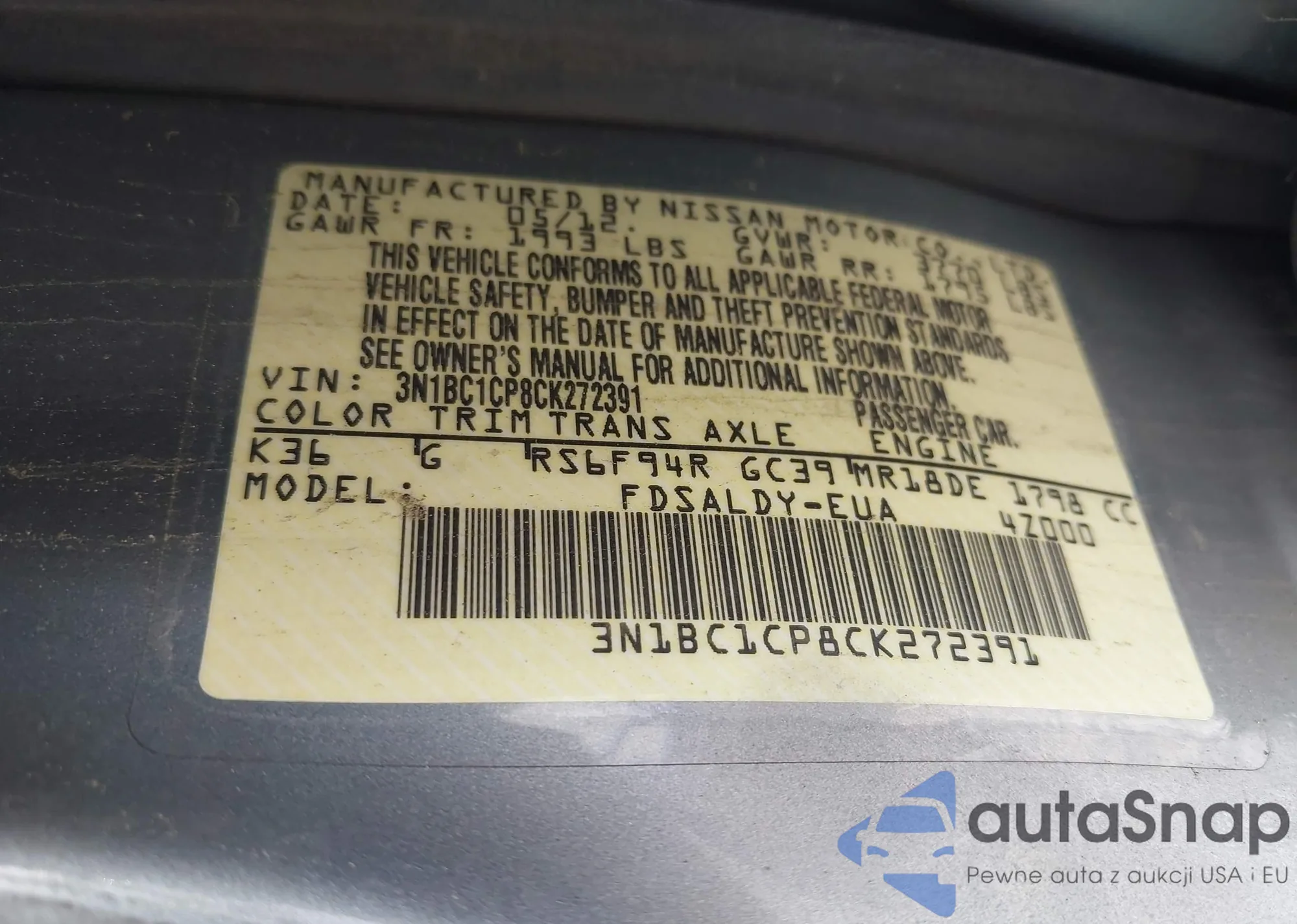 • VIN 3N1BC1CP8CK272391