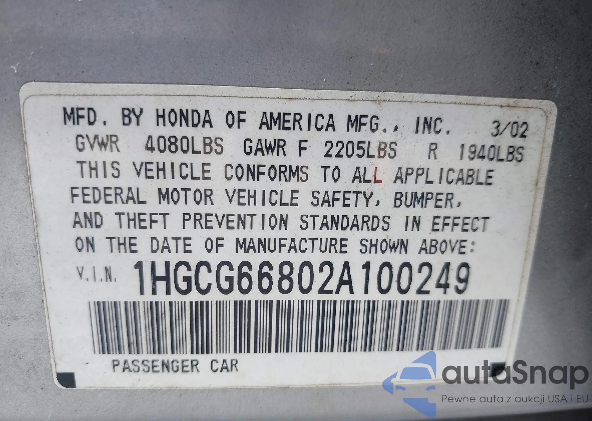 • VIN 1HGCG66802A100249