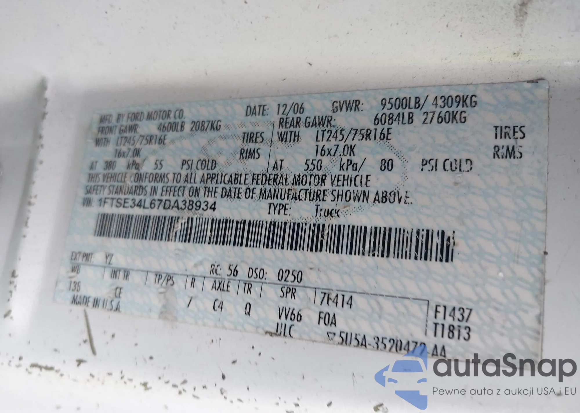 LOT: 42358777 VIN: 1FTSE34L67DA38934