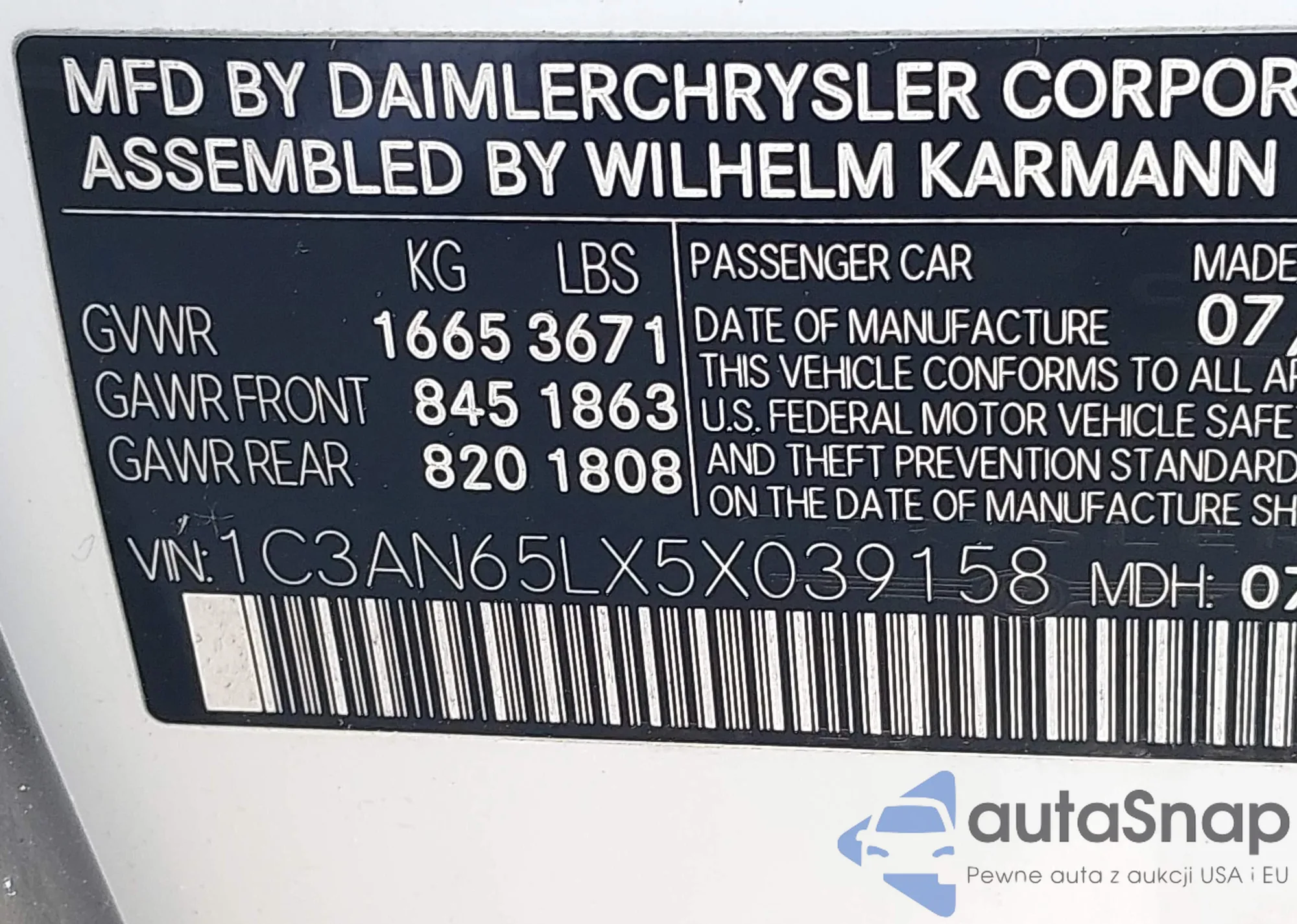 • VIN 1C3AN65LX5X039158