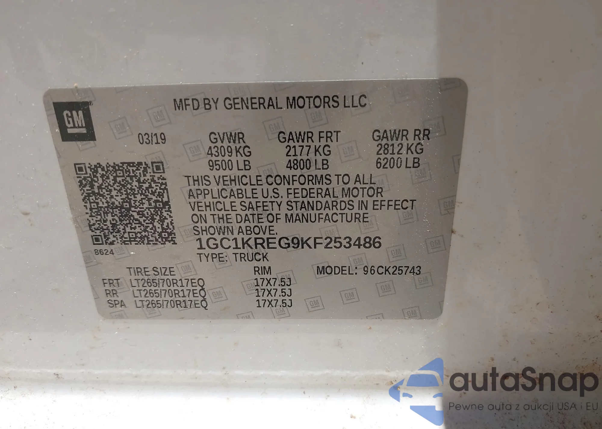 LOT: 42650270 VIN: 1GC1KREG9KF253486