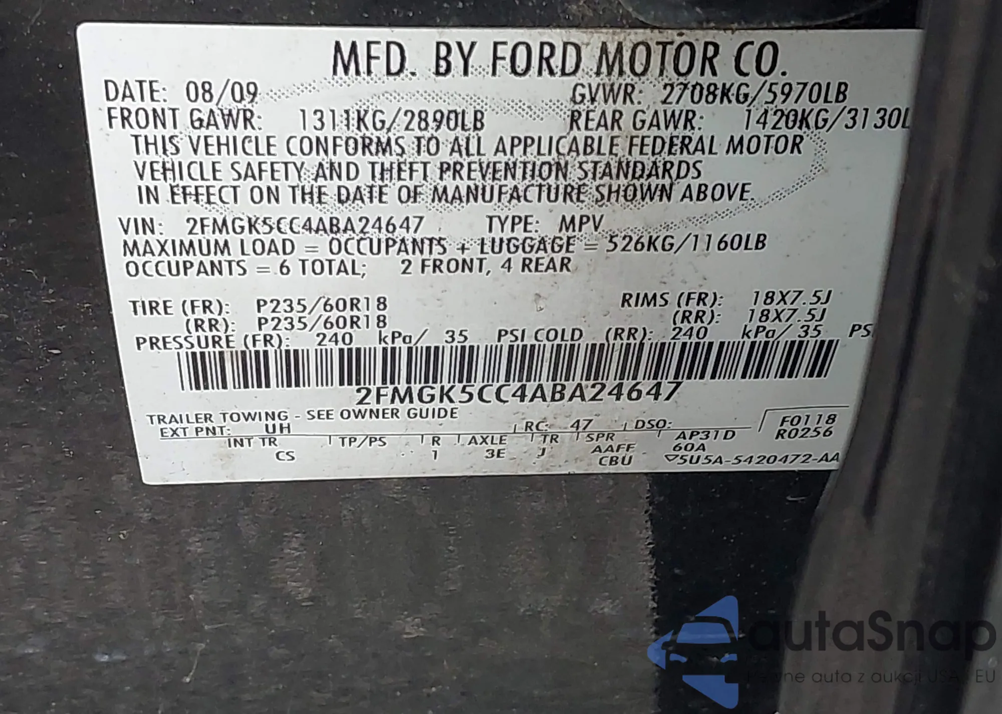 • VIN 2FMGK5CC4ABA24647