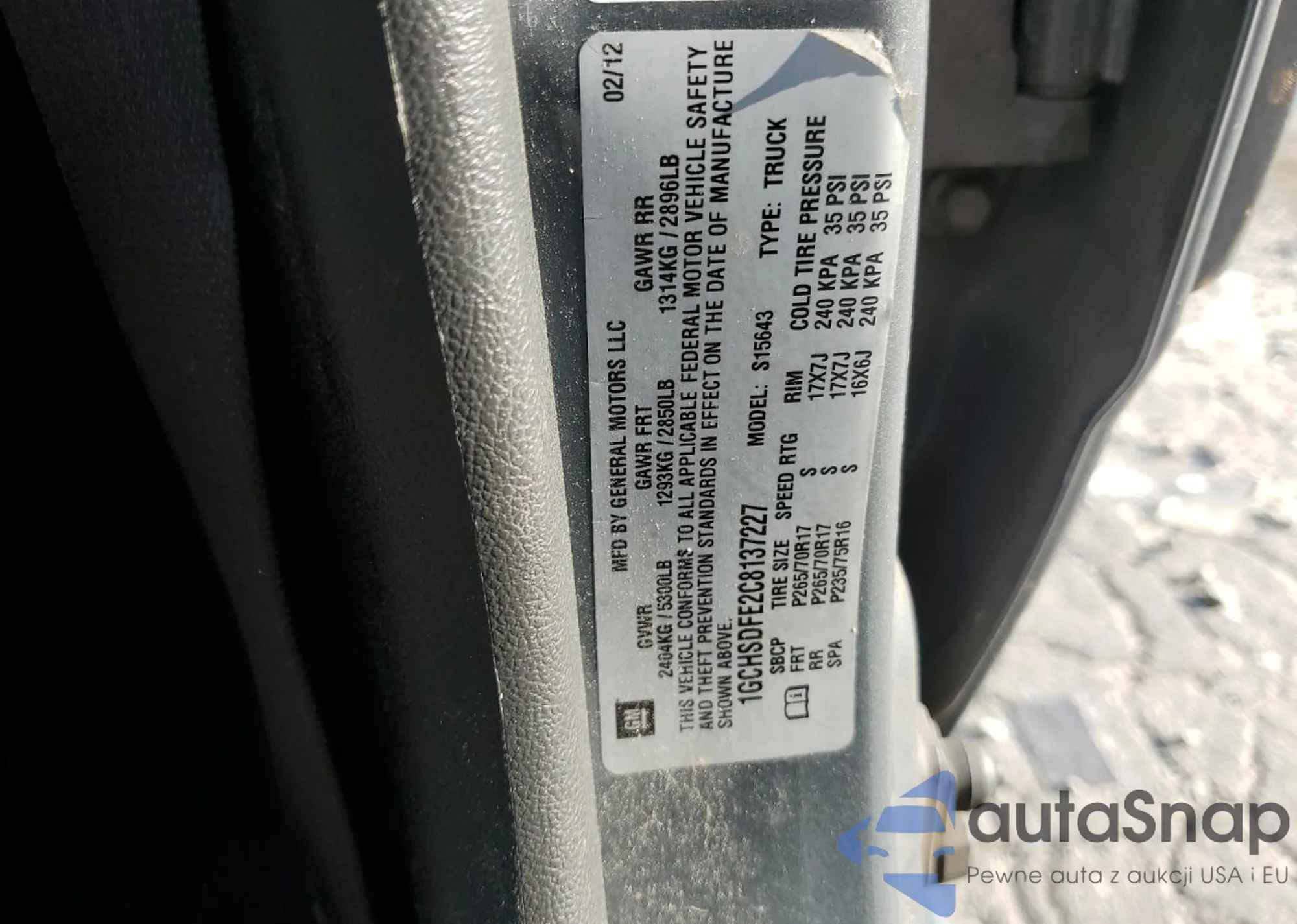 LOT: 63568915 VIN: 1GCHSDFE2C8137227
