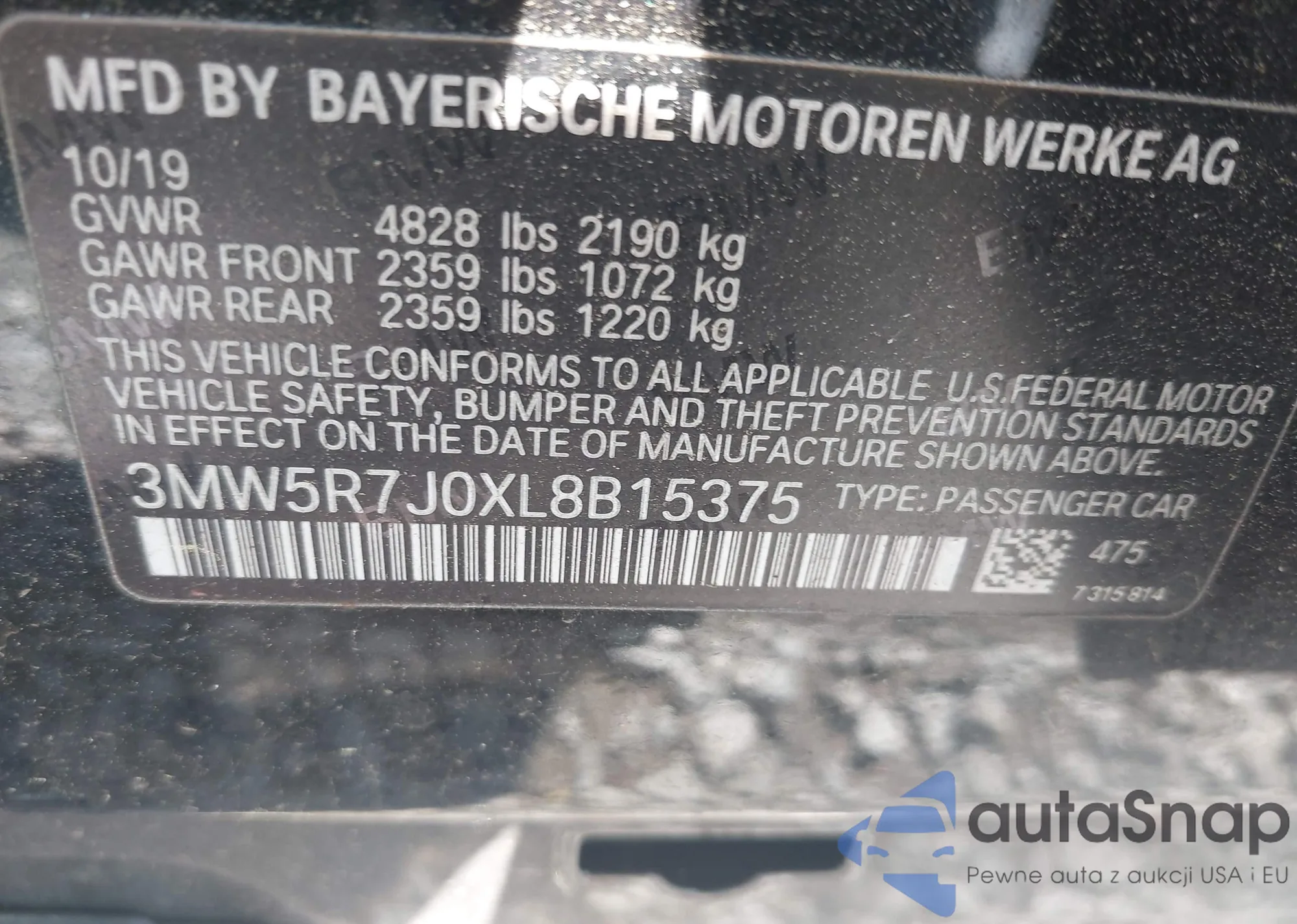 • VIN 3MW5R7J0XL8B15375
