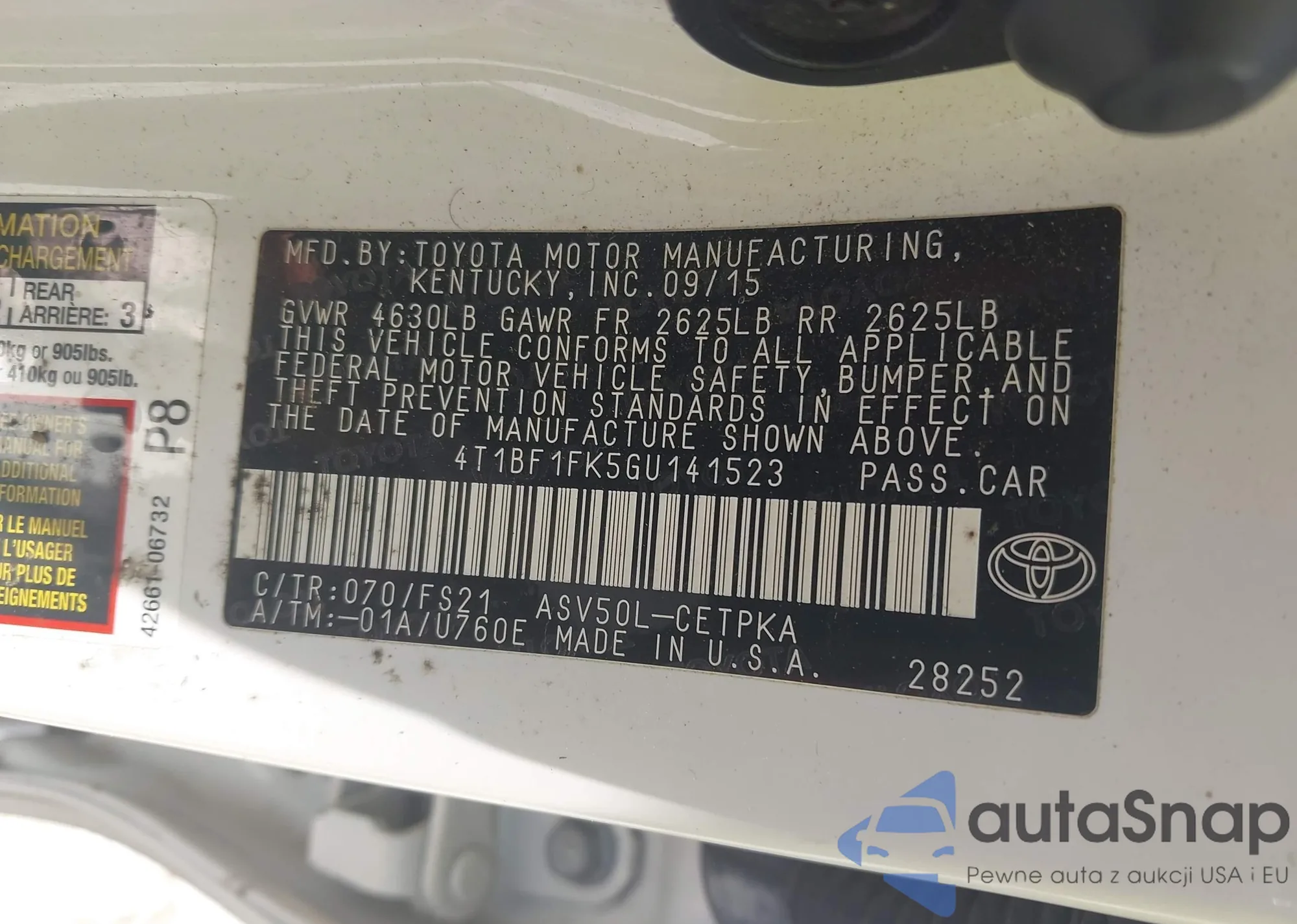 • VIN 4T1BF1FK5GU141523