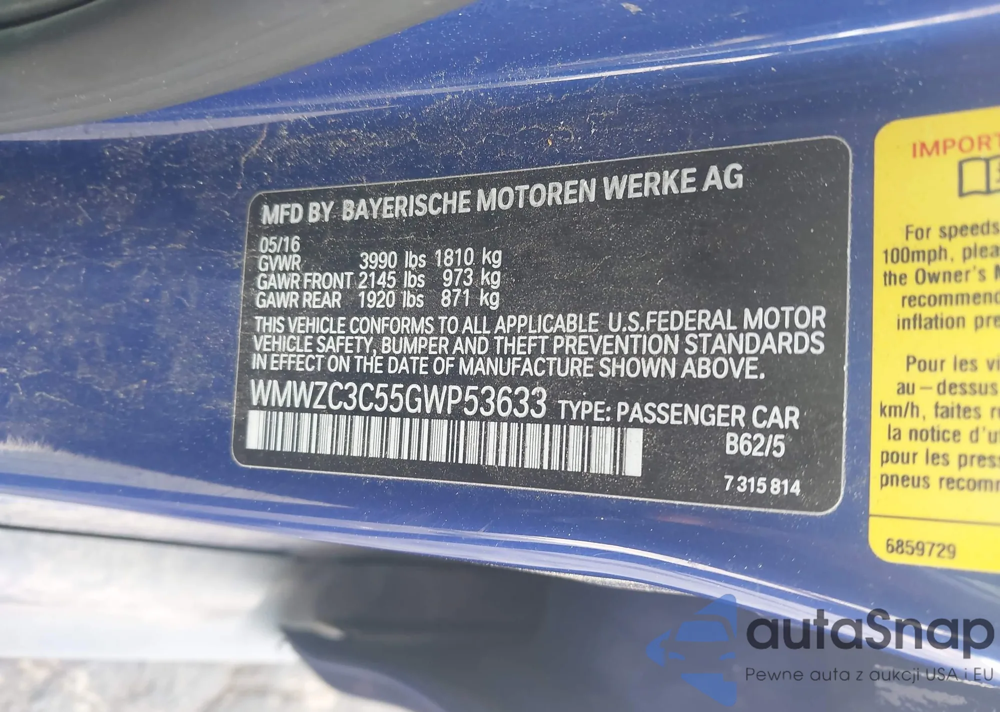 • VIN WMWZC3C55GWP53633