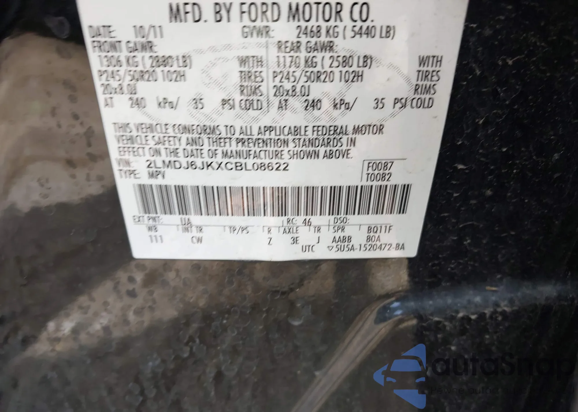 • VIN 2FMPK4AP2JBC39816