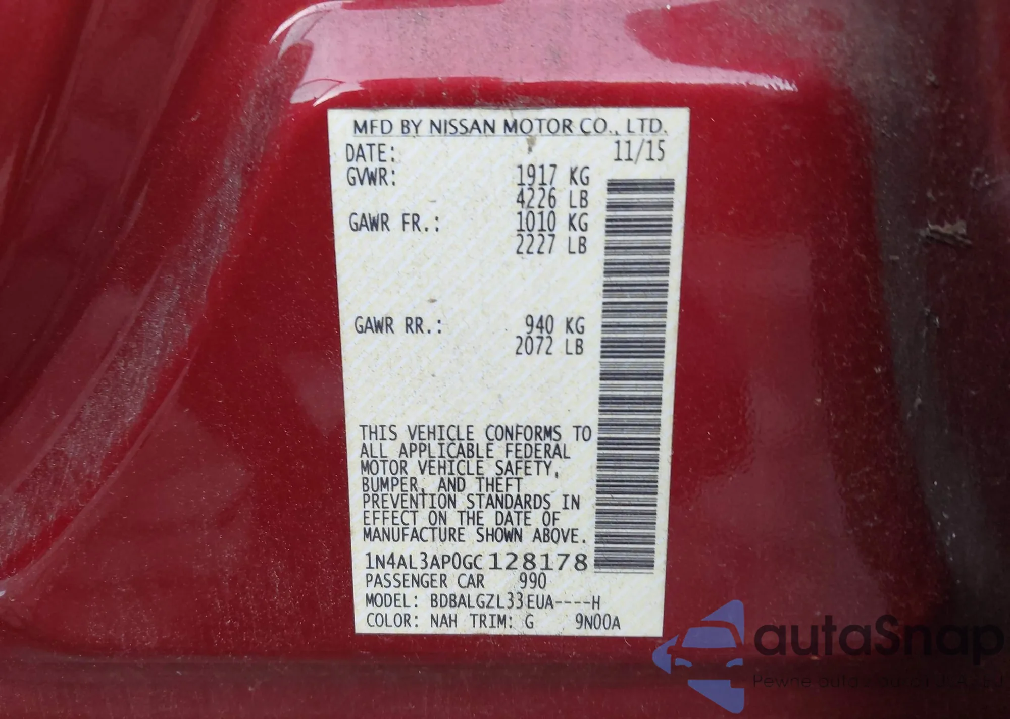 LOT: 42540873 VIN: 1N4AL3AP9HC192690
