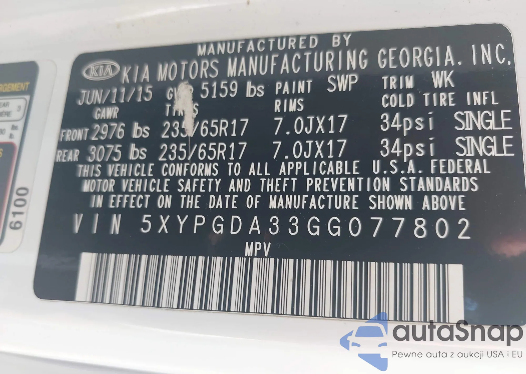 • VIN 5XYPGDA33GG077802