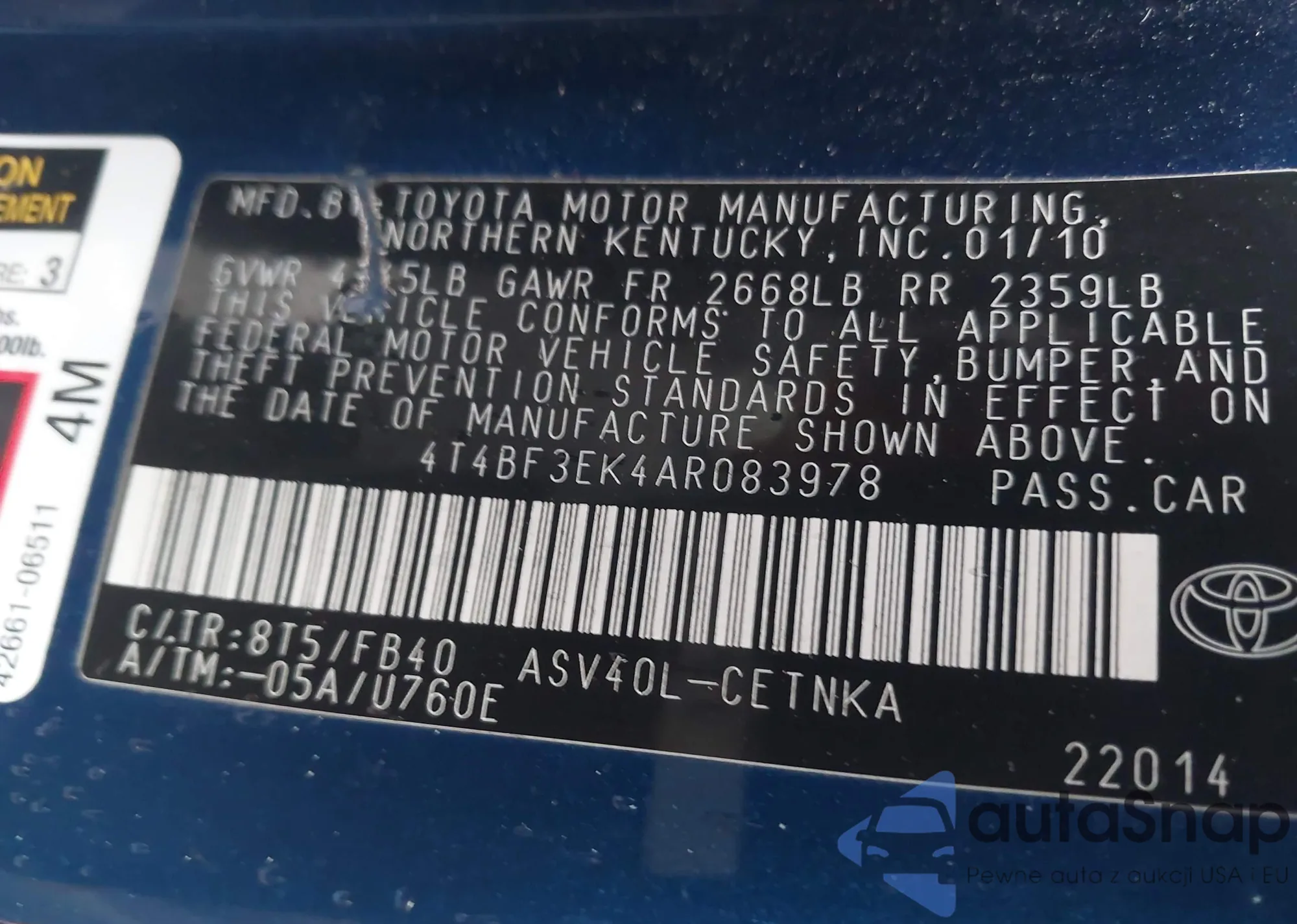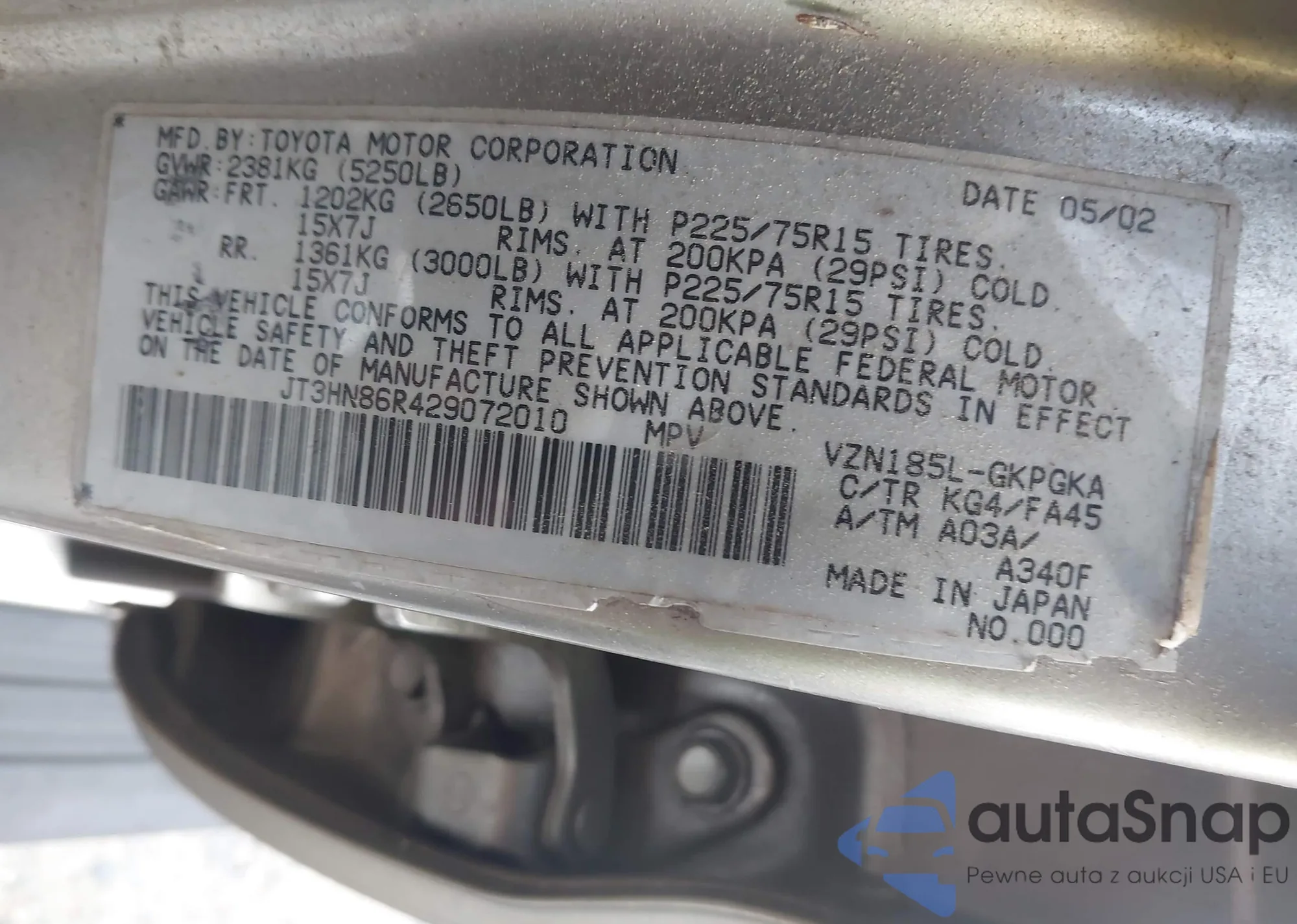LOT: 42869449 VIN: JT3HN86R429072010