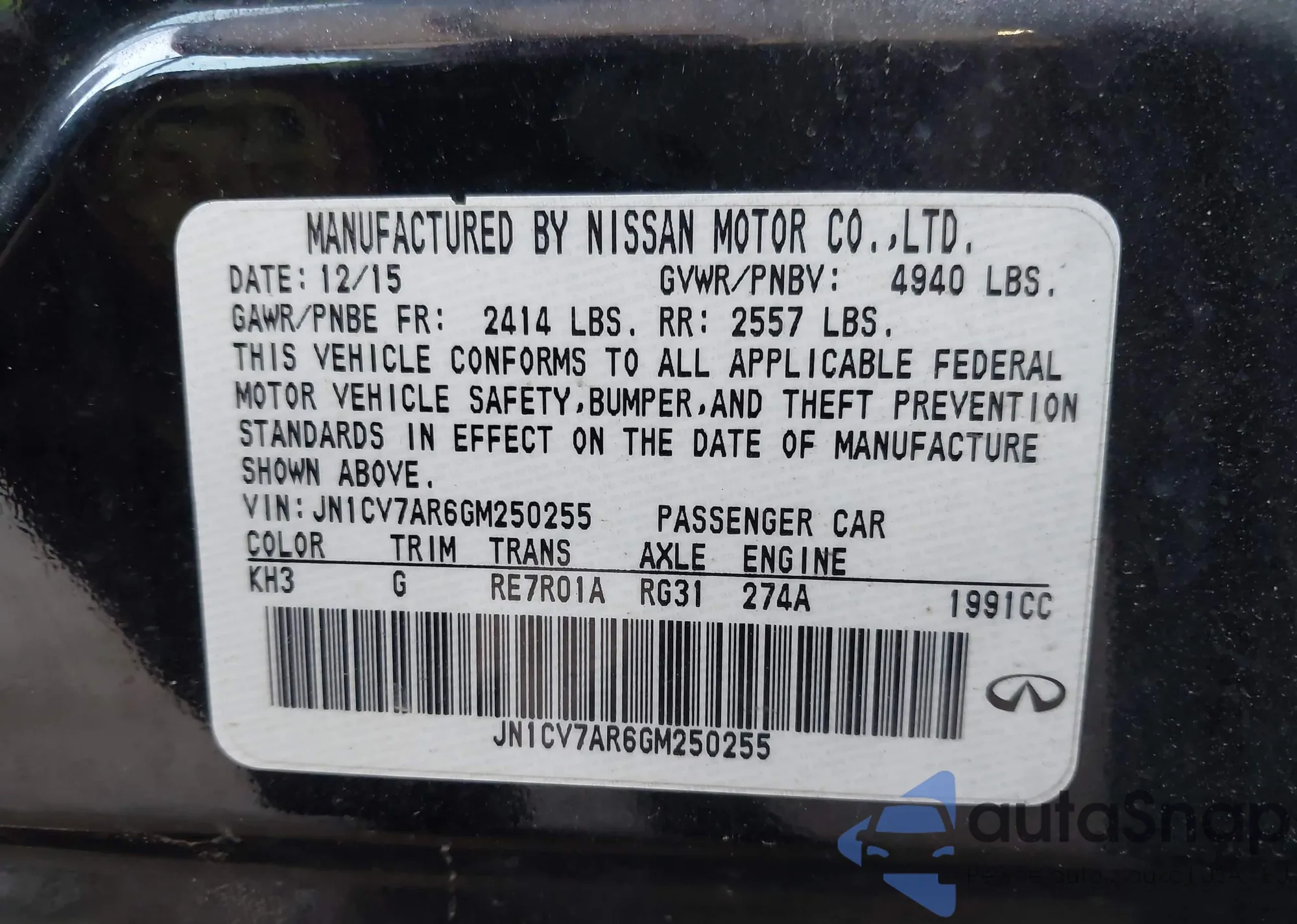 • VIN JN1CV7AR6GM250255