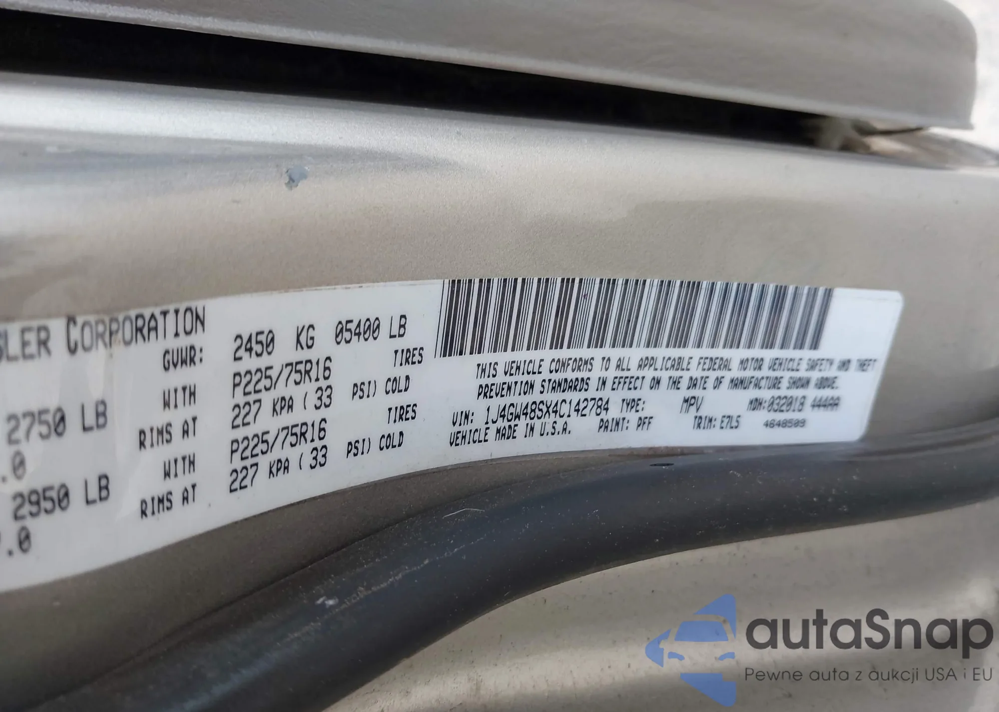 LOT: 42798666 VIN: 1J4GW48SX4C142784