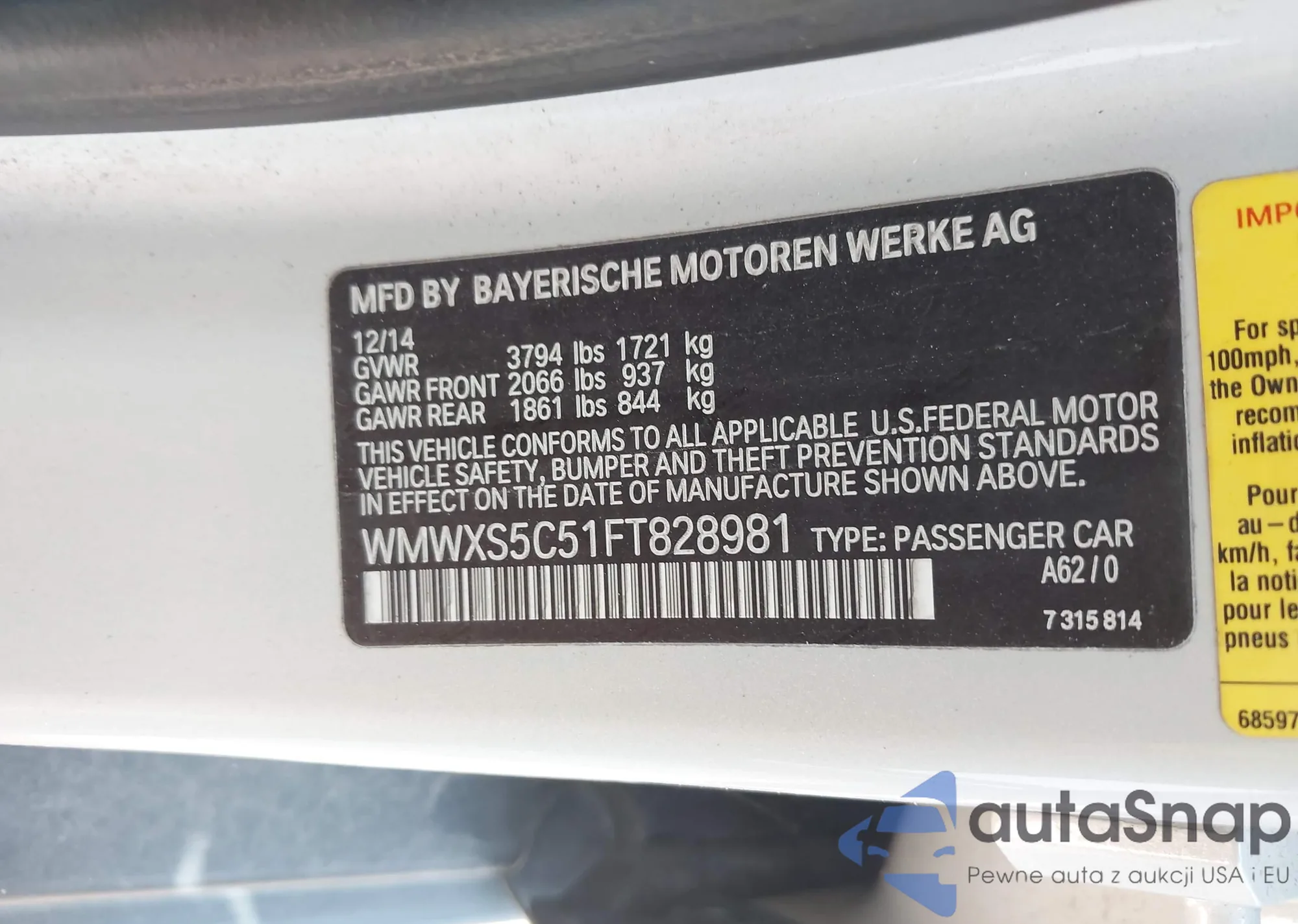 LOT: 42817124 VIN: WMWXS5C51FT828981