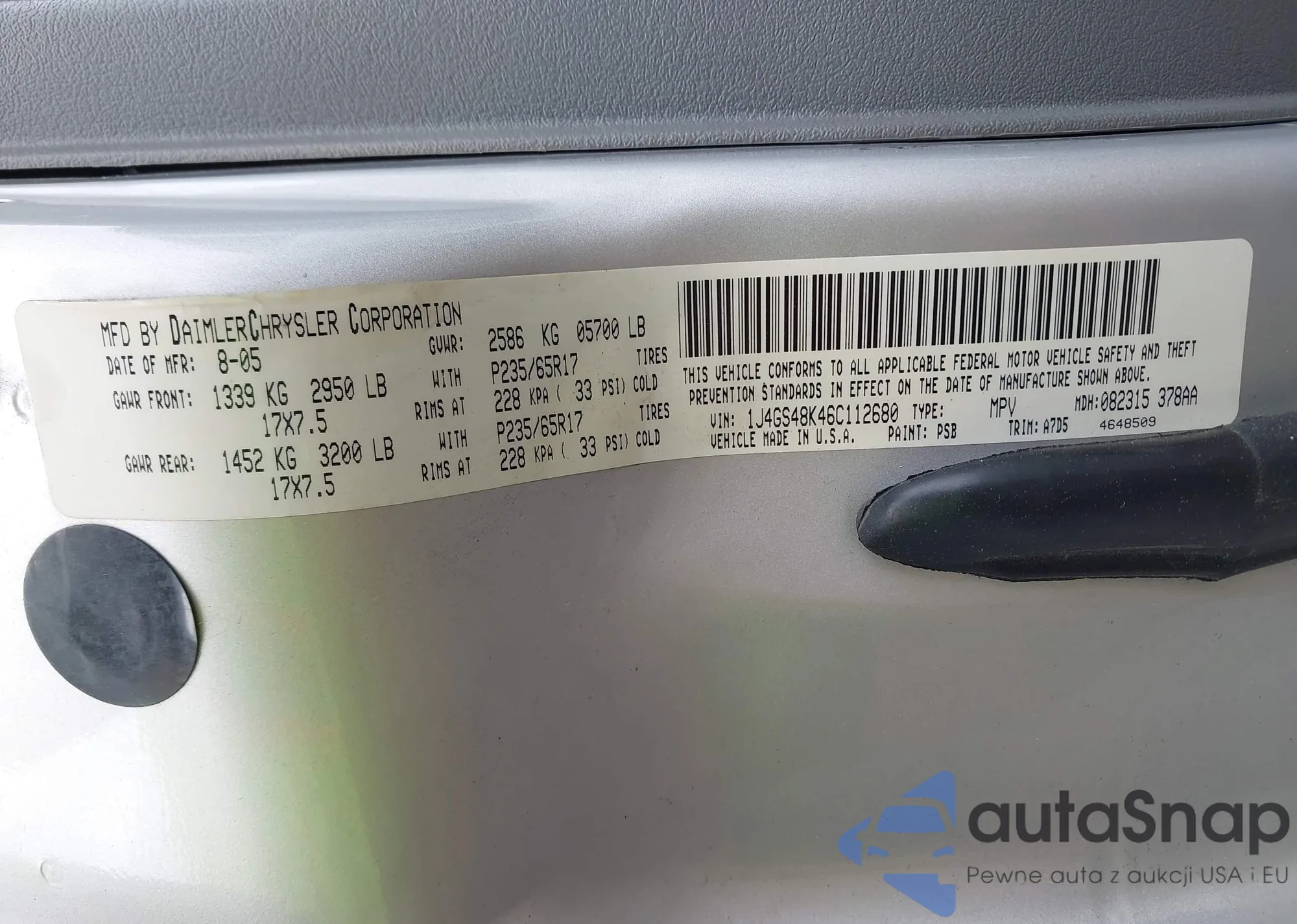 LOT: 42681717 VIN: 1J4GS48K46C112680