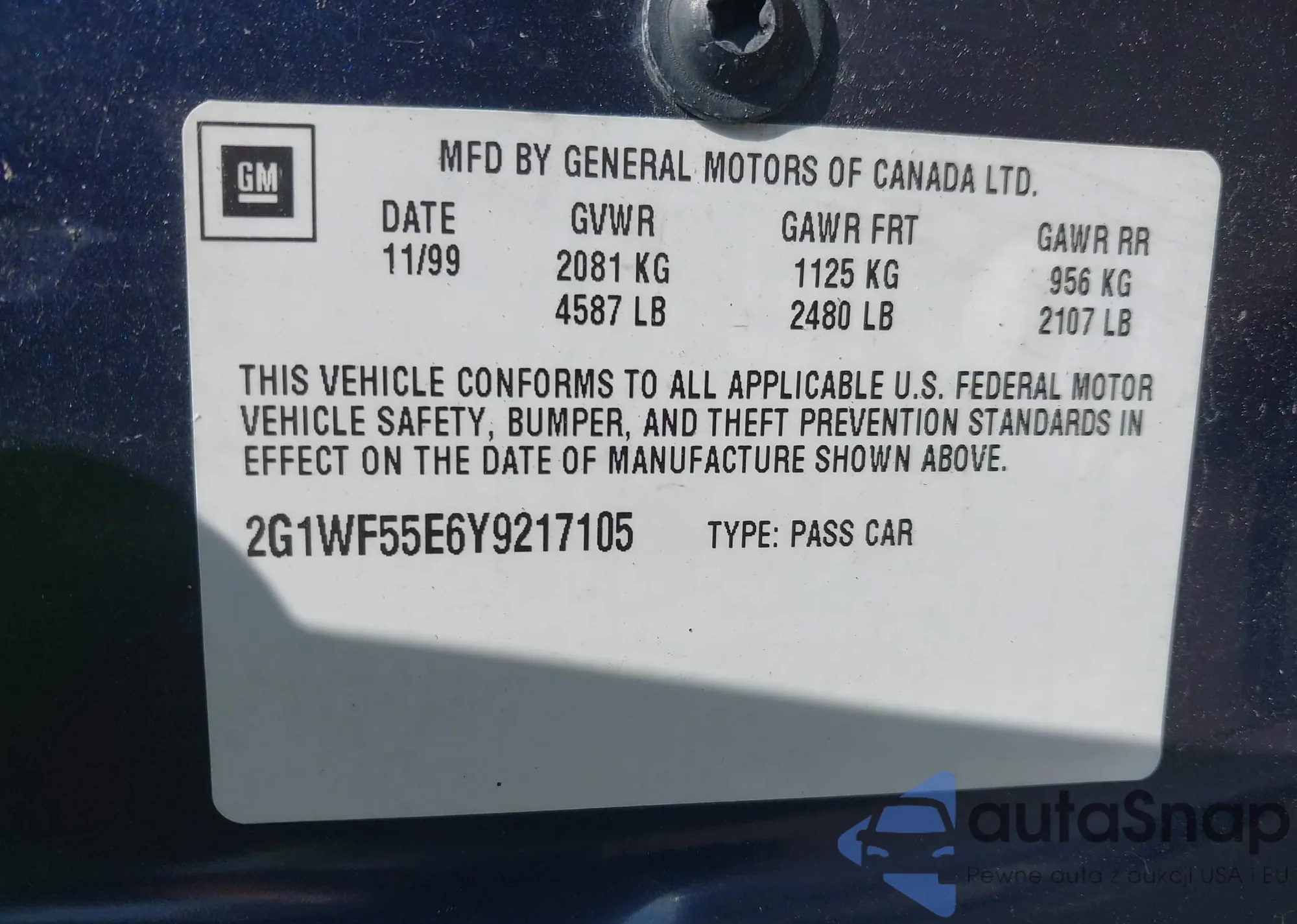 • VIN 2G1WF55E6Y9217105