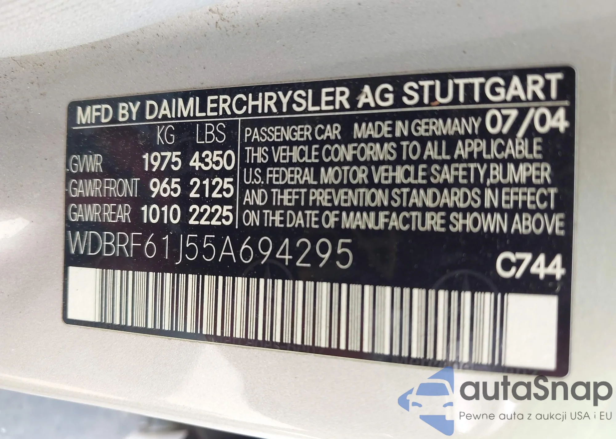 • VIN WDBRF61J55A694295
