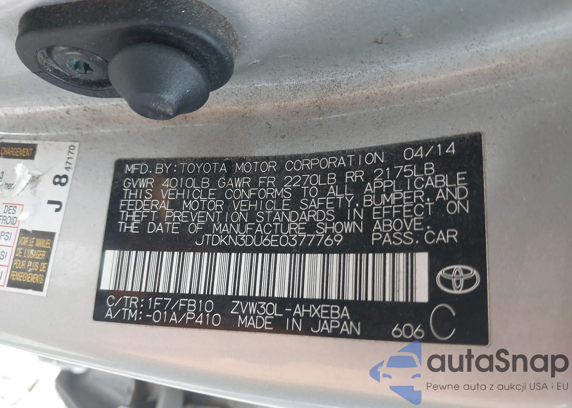 • VIN JTDKN3DU6E0377769