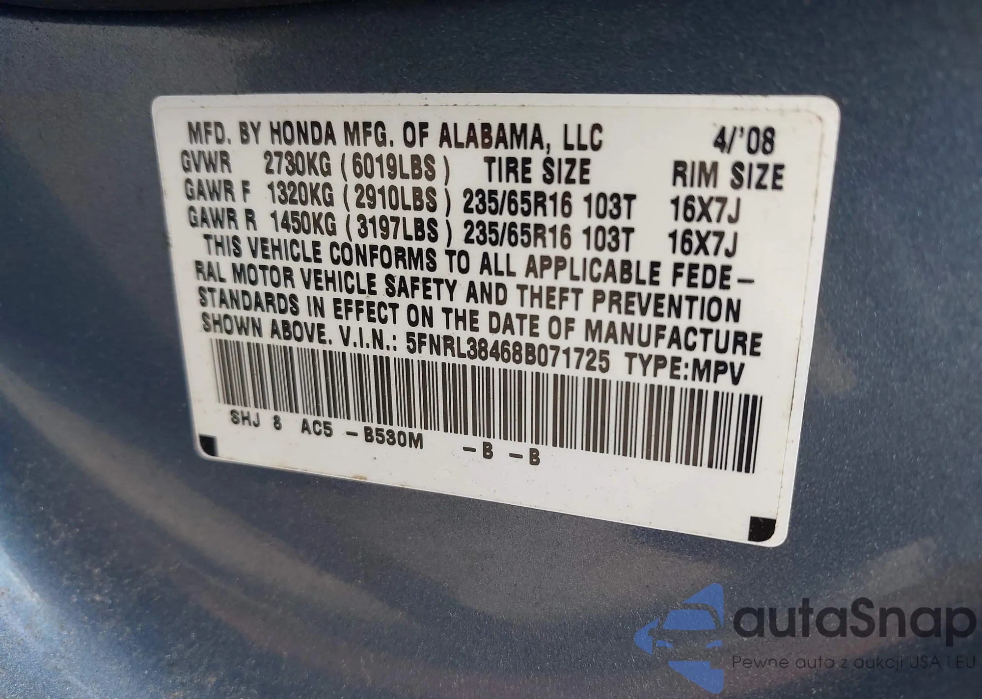 LOT: 42846611 VIN: 1FTPW12V88FB78050