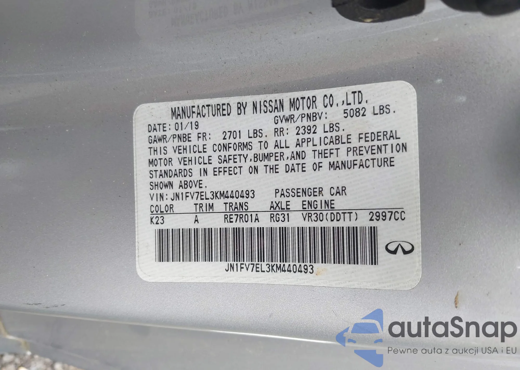 • VIN JN1FV7EL3KM440493