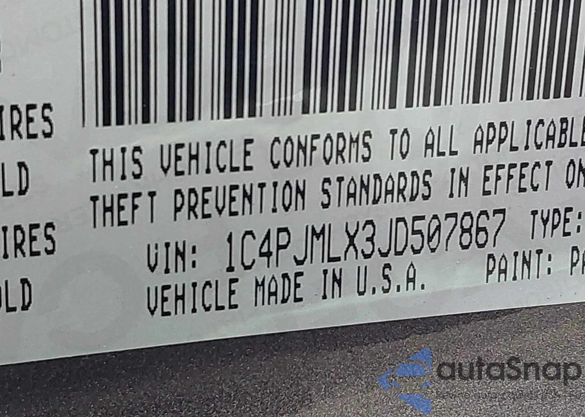 • VIN 1C4PJMLX3JD507867
