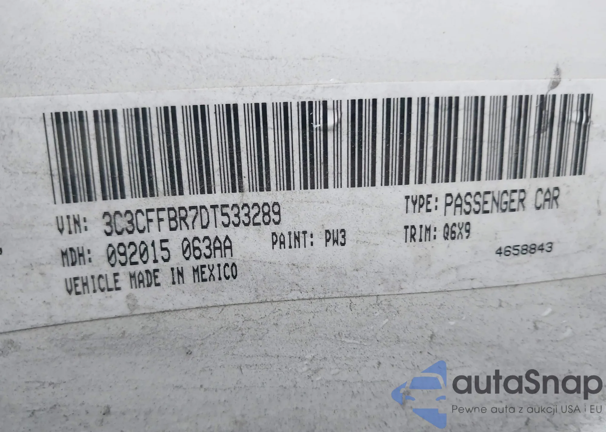 • VIN 3C3CFFBR7DT533289