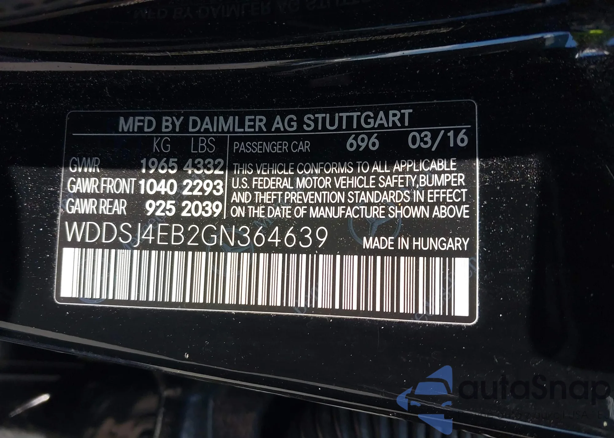 • VIN WDDSJ4EB2GN364639
